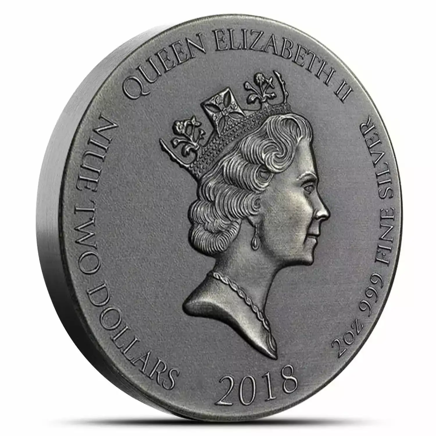 The obverse of the 2 oz Chariot of Fire Biblical Silver Coin features the right-profile bust of Queen Elizabeth II. This particular coin series uses the Raphael Maklouf, third-generation design of the Queen as she wears the royal diadem upon her head.