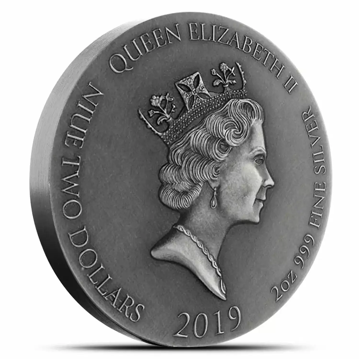 The obverse side of 2019 Crown of Thorns Biblical Silver Coins includes Raphael Maklouf’s third-generation portrait of Queen Elizabeth II. This design appeared on British coinage between 1984 and 1997 and depicts a younger Queen wearing the Royal Diadem crown
