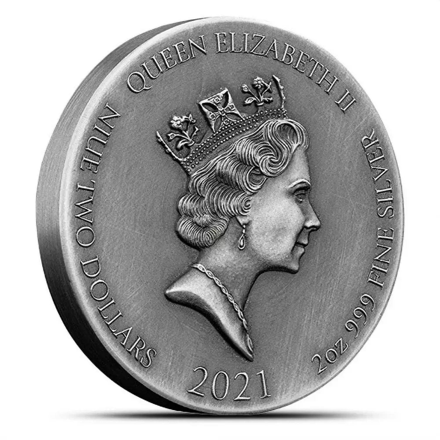 Queen Elizabeth II features on the obverse of 2021 Jesus Delivered Biblical Silver Coins. This is the third-generation British effigy of the Queen that was created for the Royal Mint in 1985. Raphael Maklouf is the designer behind this portrait and it captures an idealized, young version of the Queen. She wears the George IV State Diadem Crown on her head in this effigy.