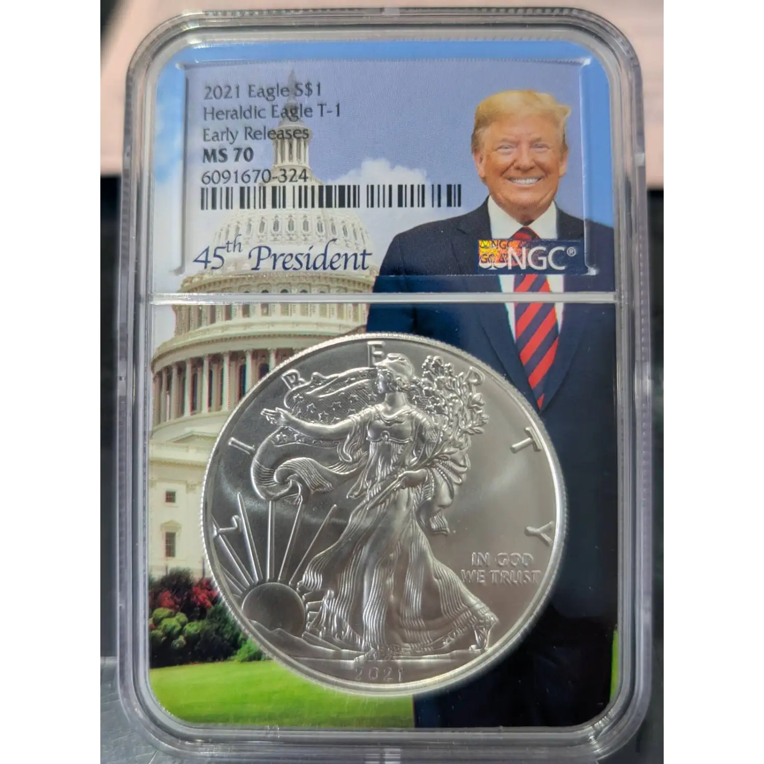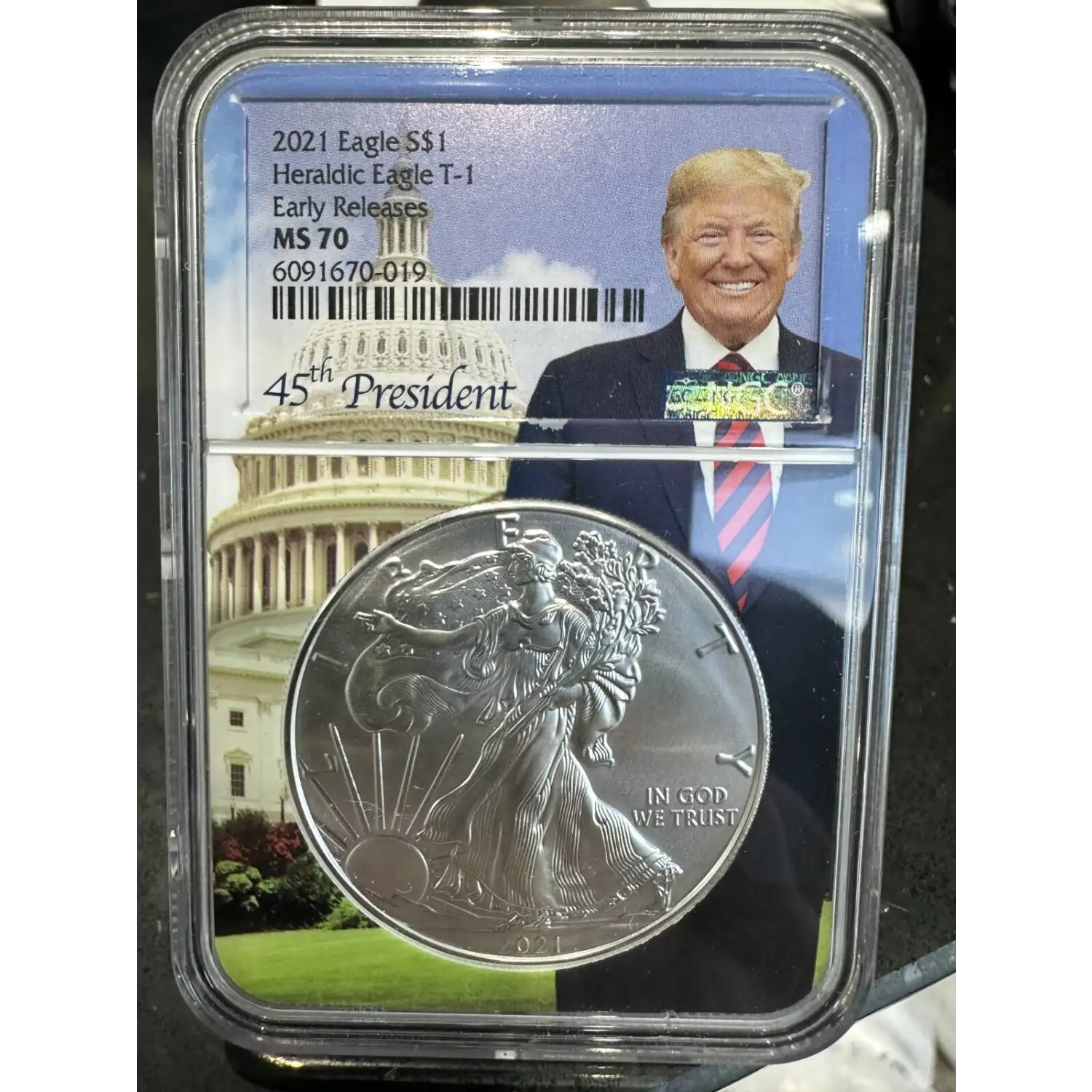 | Name | 2021 American Silver Eagle NGC ER MS70 Heraldic Eagle T-1 Donald Trump Core |