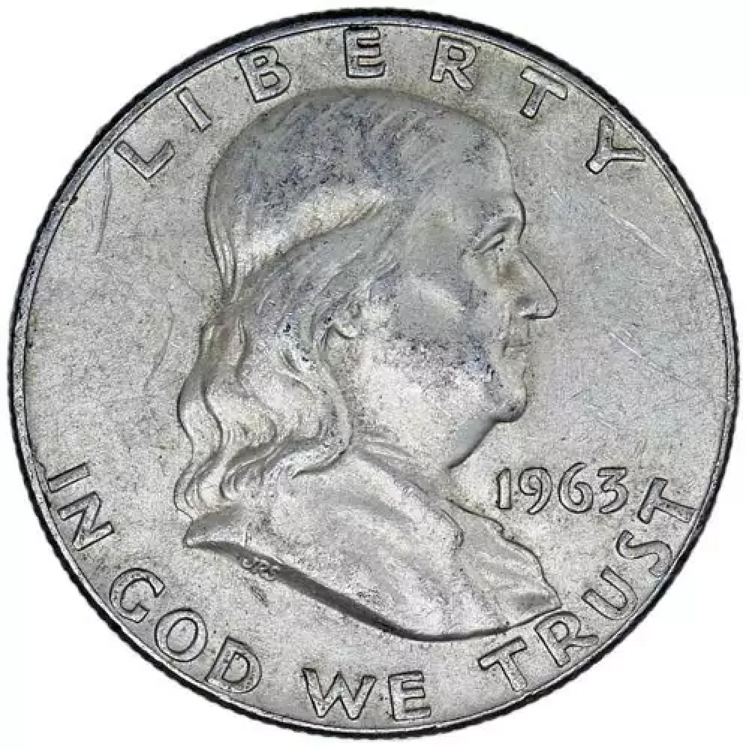 That left the Walking Liberty Half Dollar to be replaced with Franklin’s likeness. Benjamin Franklin appeared on the obverse of the half dollar from 1948 until 1964, when his image was replaced by that of the assassinated John F. Kennedy. Franklin’s right-profile portrait was created by mint engraver John R. Sinnock, who also created a Liberty Bell design for the reverse.