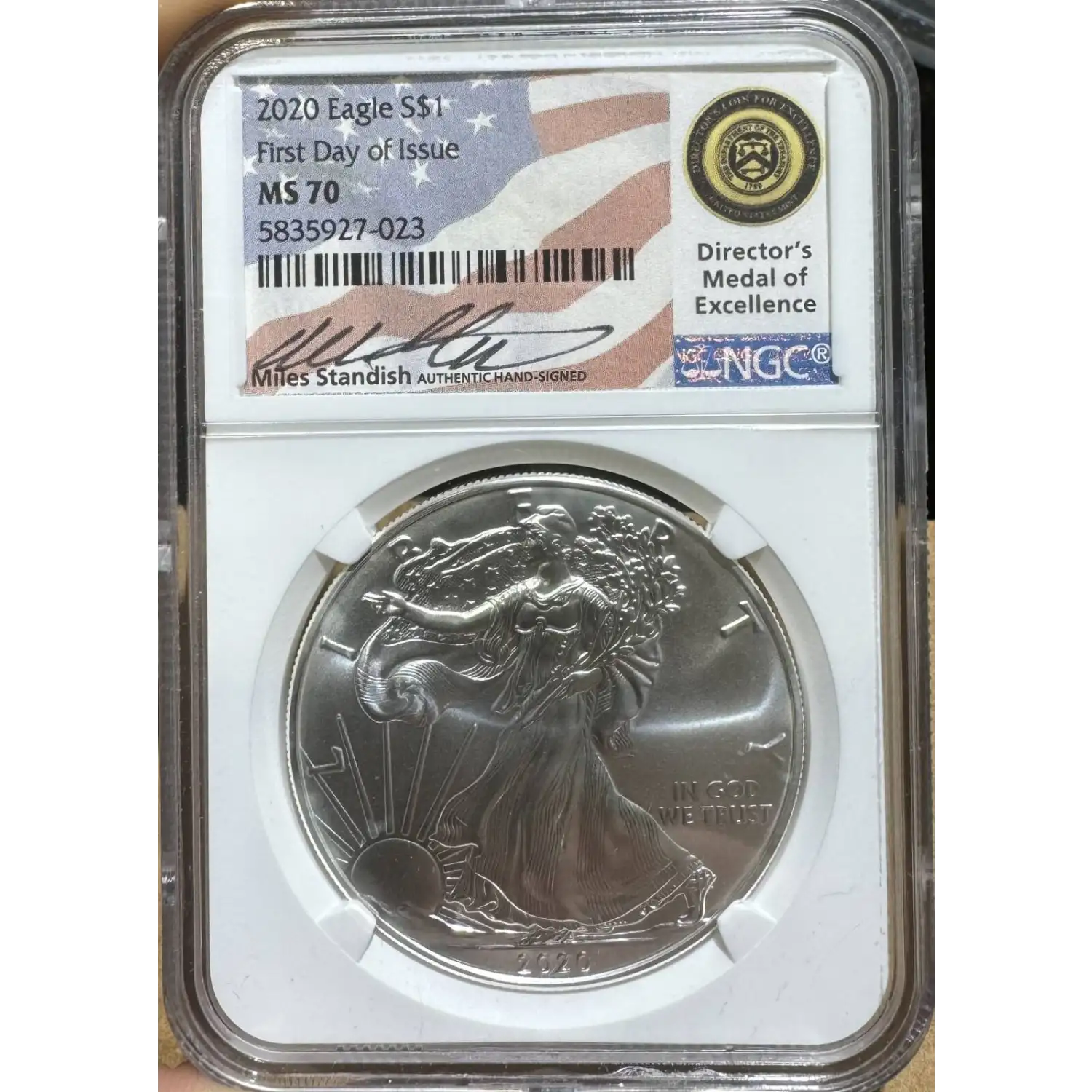 | Name | 2020 American Silver Eagle NGC MS70 FDI - Miles Standish Signed |