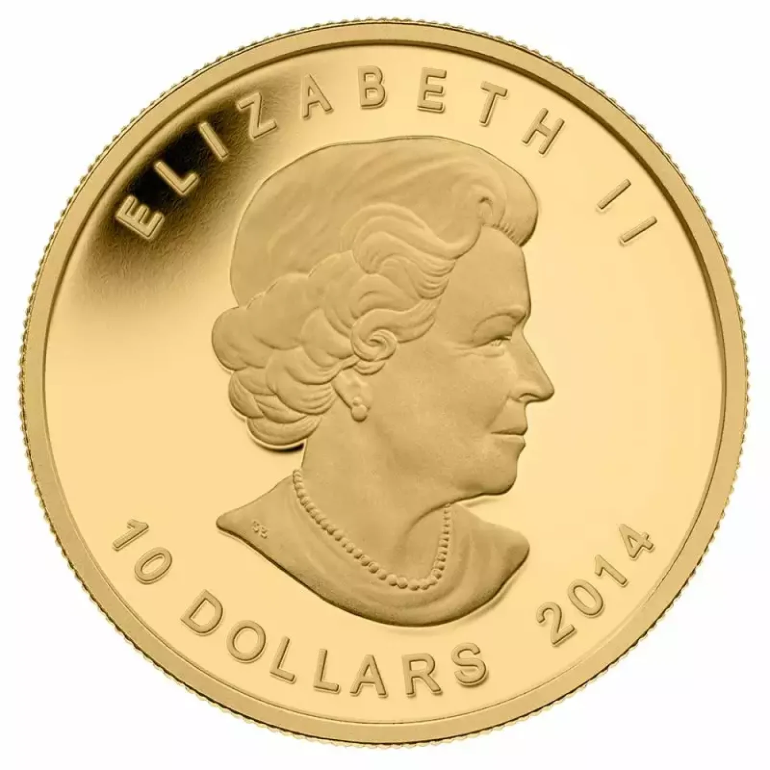 The obverse side of 2014 1/4 oz Canadian Gold Arctic Fox Coins features the right-profile bust of Queen Elizabeth. This beautiful design is the fourth-generation portrait of the Queen to feature on Canadian coins. It was developed in 2003 by Susanna Blunt and is the first bust of the Queen during her reign to lack a crown in the design. Notably, this is just the second monarch effigy created by a Canadian artist.