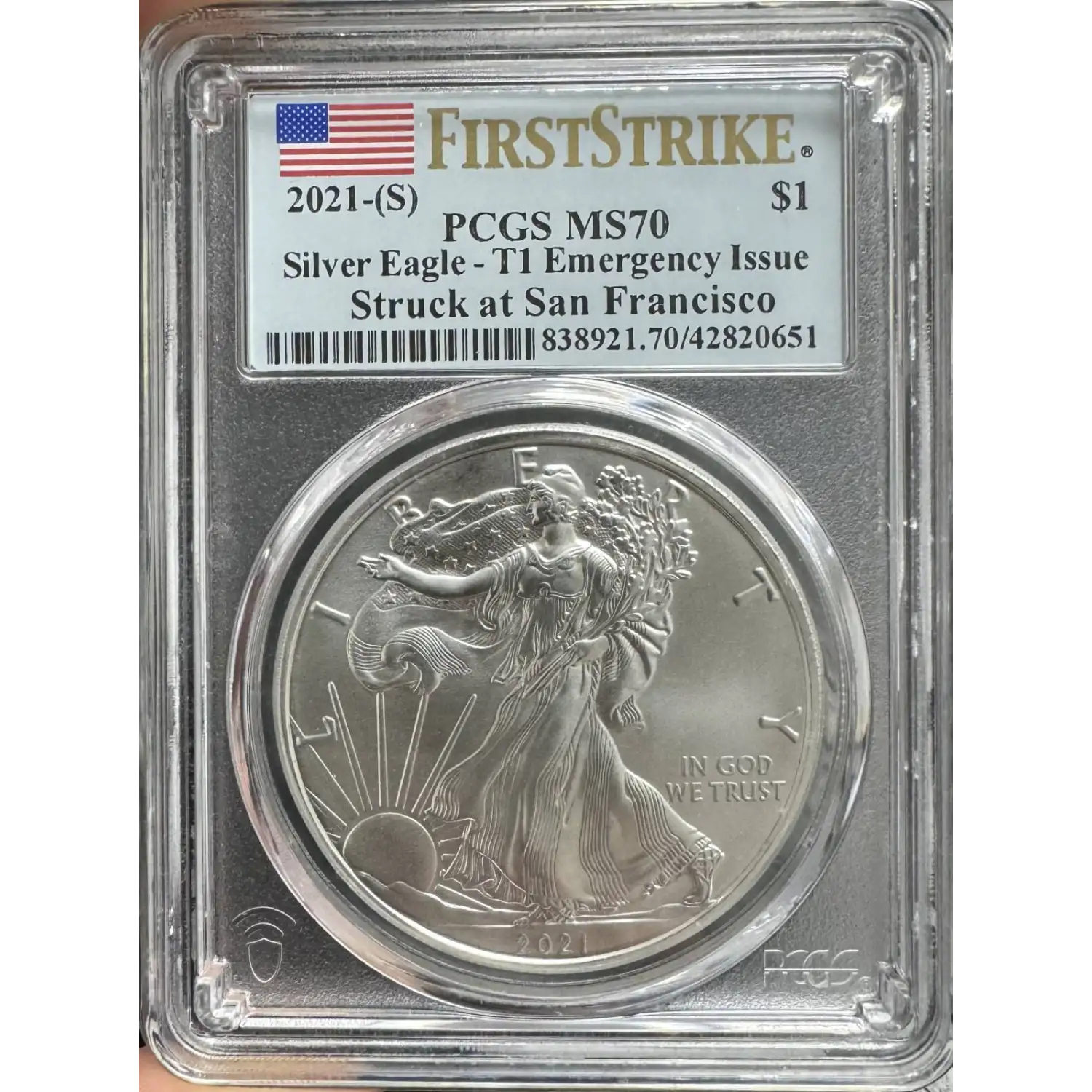 2021 (S) American Silver Eagle PCGS MS-70 Type 1 First Strike Emergency Issue Struck at San Francisco