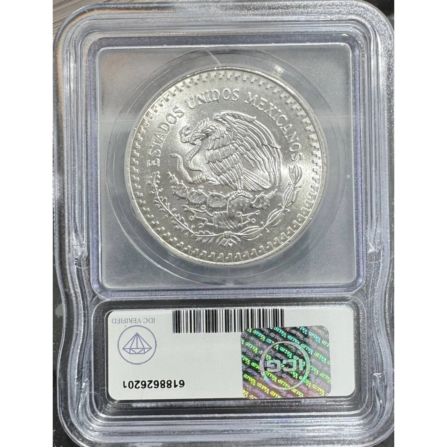| Name | 1986 Mexican 1 onza Silver Libertad ICG MS67 - IDC Verified |
