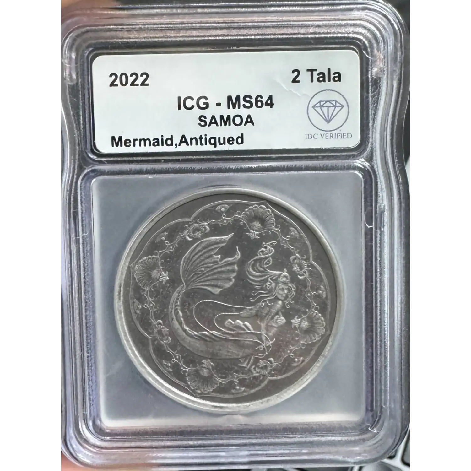 | Name | 2022 Antiqued Mermaid Princess of the Seas ICG MS64 - IDC Verified |