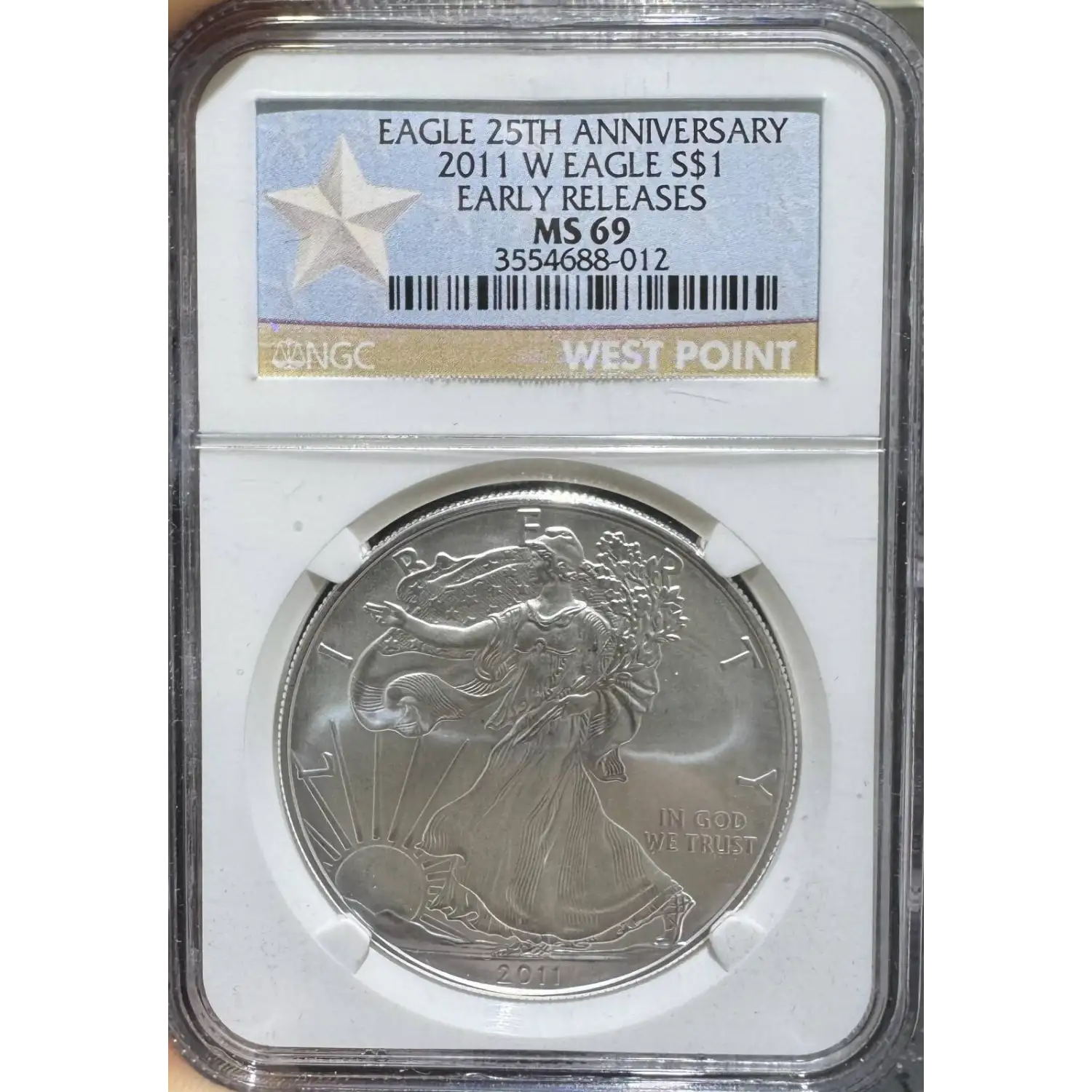 | Name | 2011 American Silver Eagle NGC MS69 Burnished ER 25th Ann |