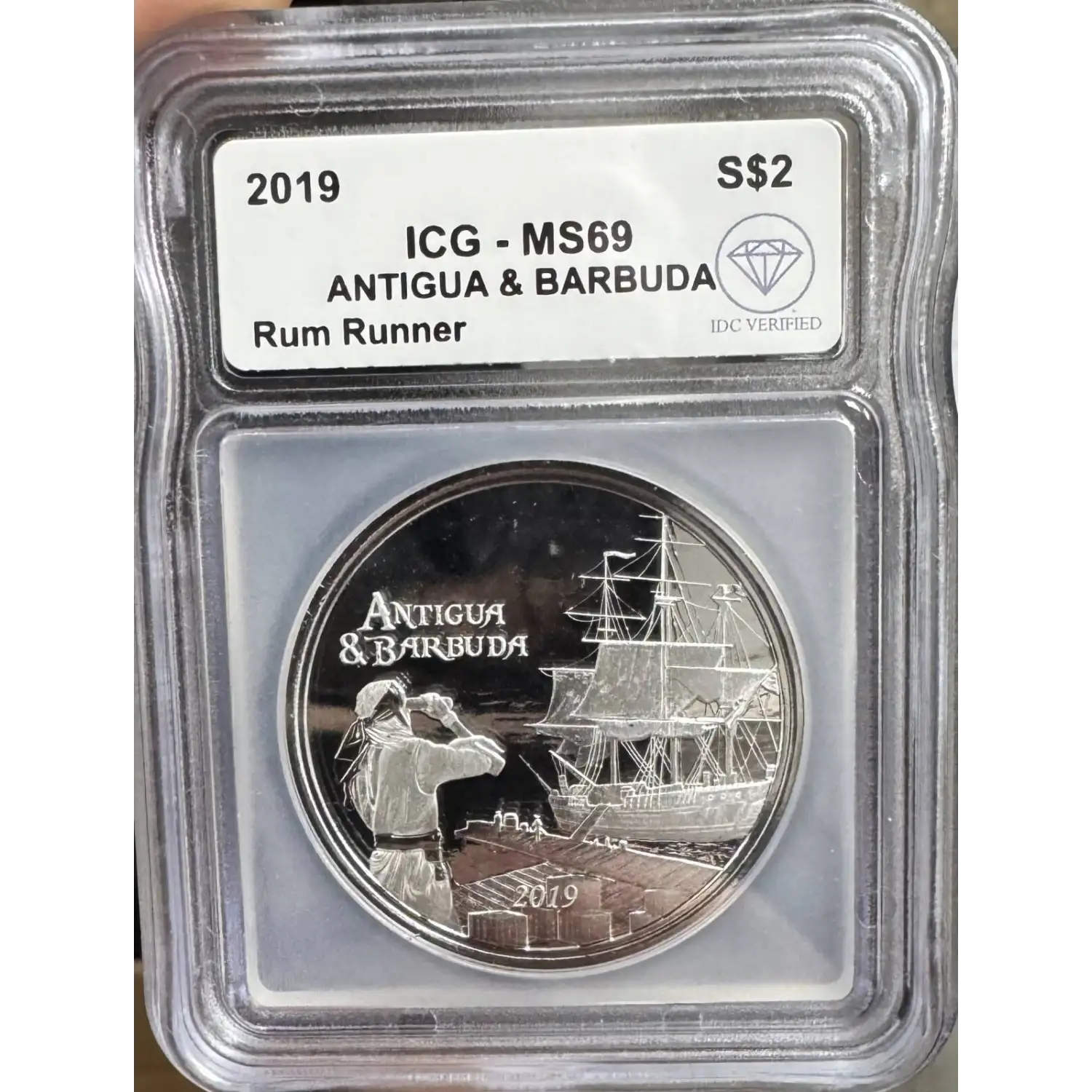 | Name | 2019 Silver Antigua & Barbuda Rum Runner ICG MS69 IDC Verified |