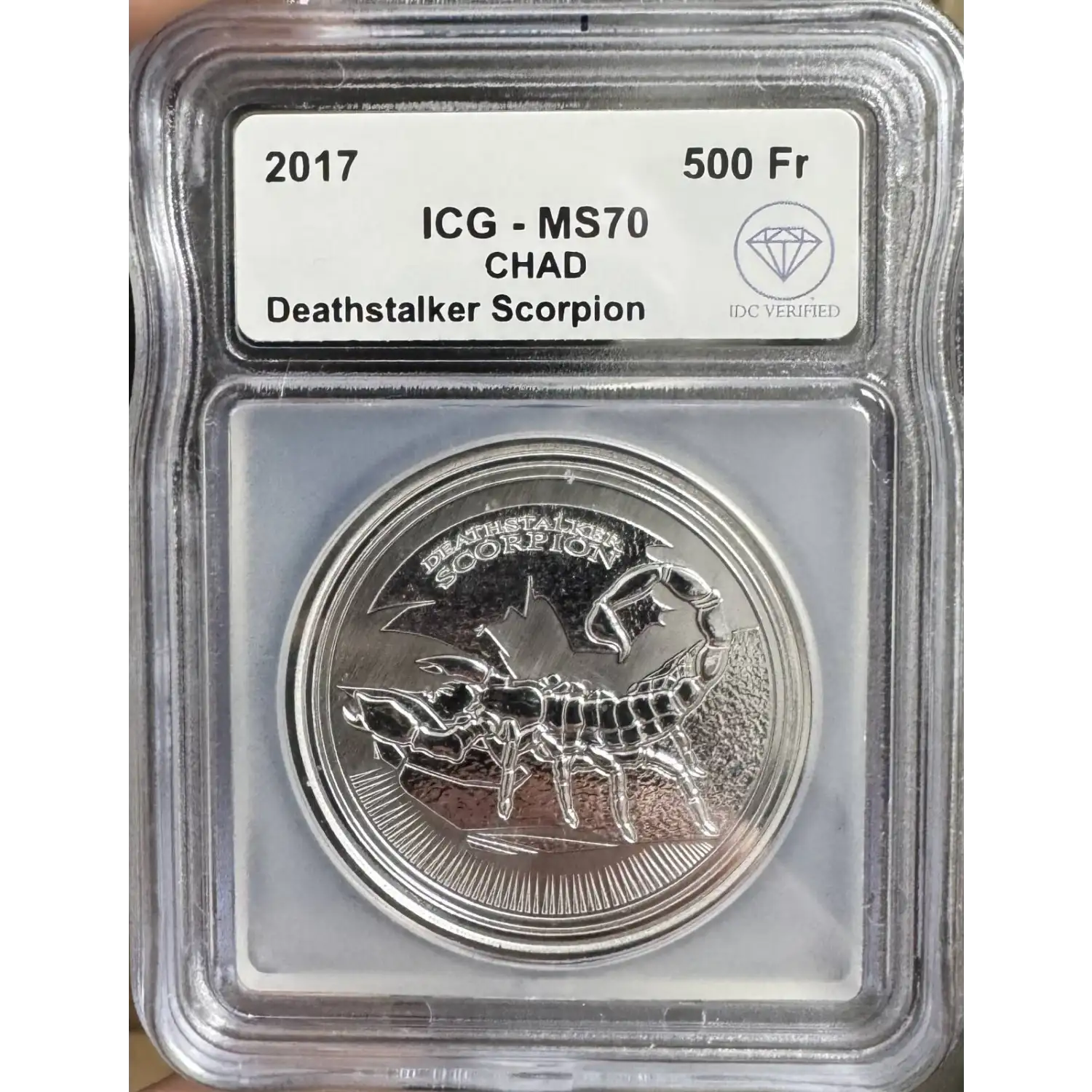 | Name | 2017 Silver Chad Deathstalker Scorpion ICG MS70 IDC Verified |