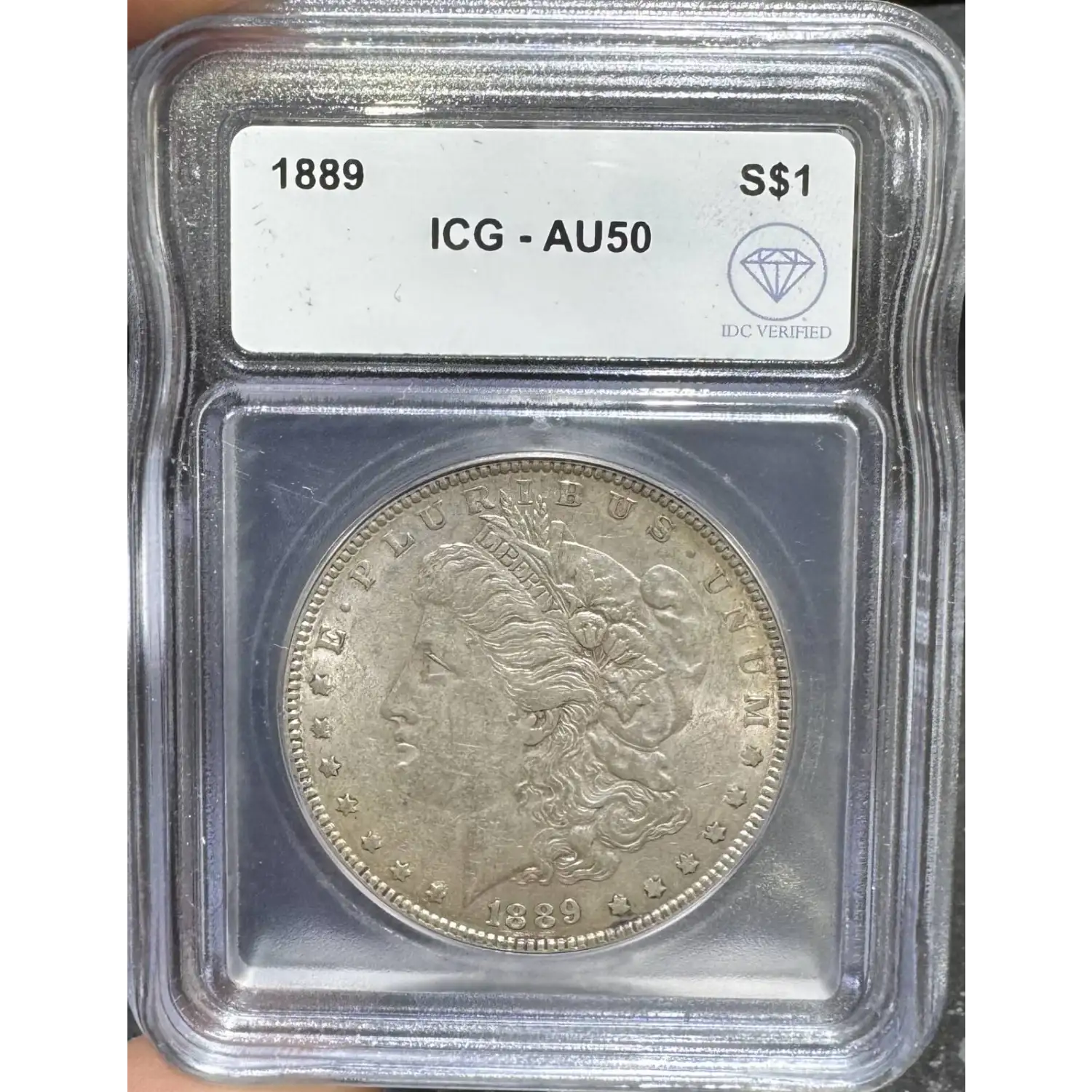| Name | 1889 Morgan Dollar ICG AU50 IDC Verified |