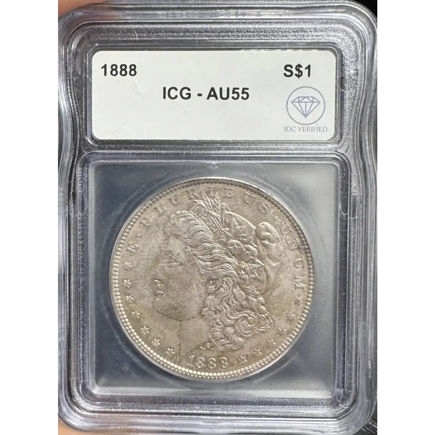 1888 Morgan Silver Dollar ICG AU-55 IDC Verified (Toned)