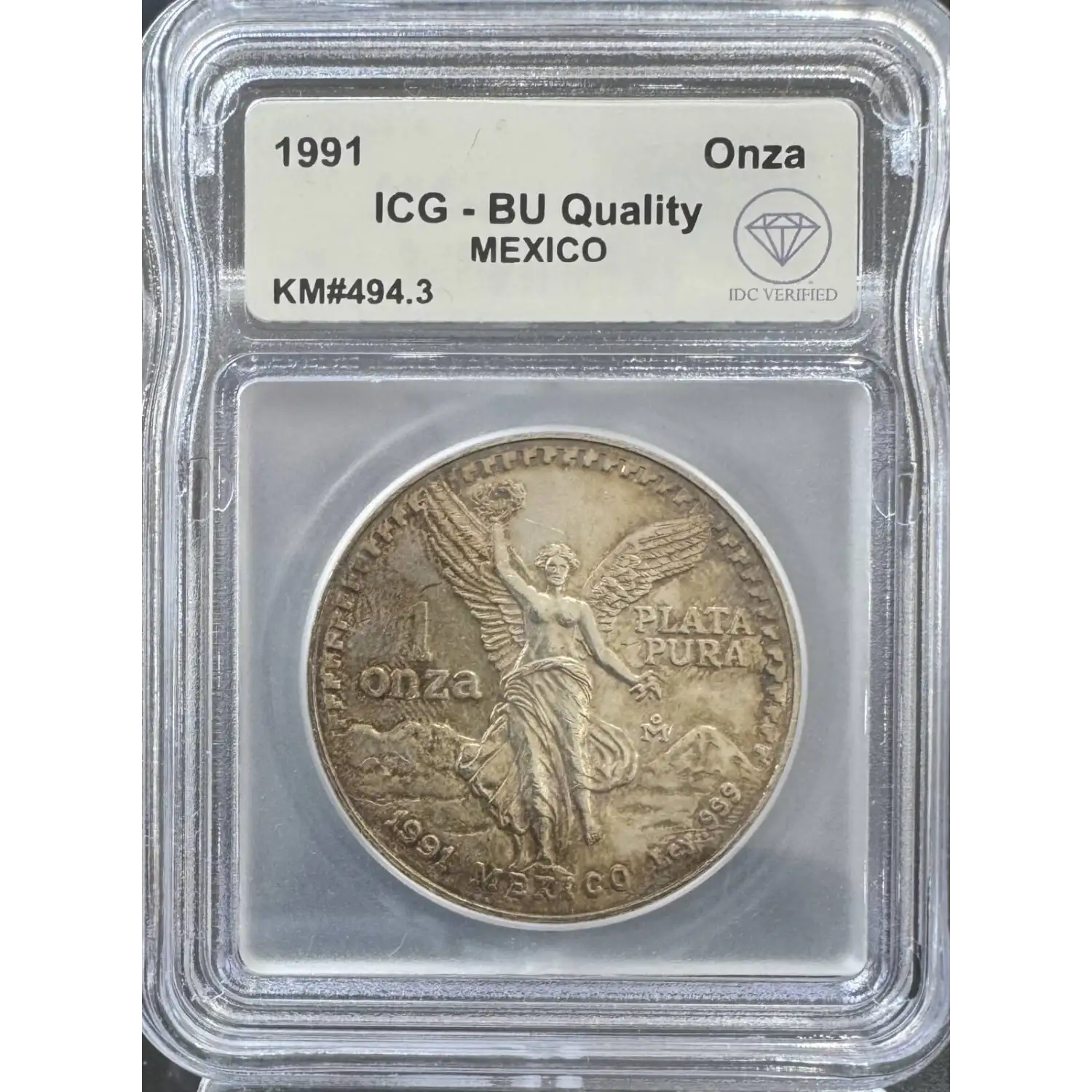 1991 MEXICO Silver ONZA (Troy Ounce of Silver) ICG BU Quality IDC Verified KM#494.3