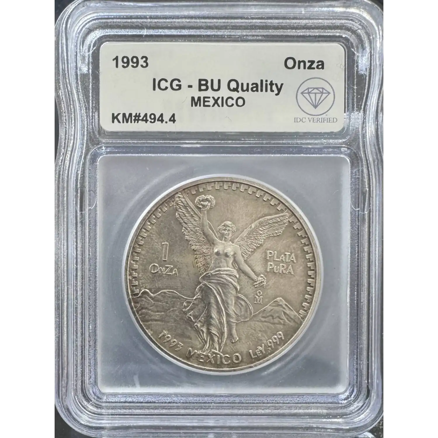 1993 MEXICO Silver ONZA (Troy Ounce of Silver) ICG BU Quality IDC Verified KM#494.4