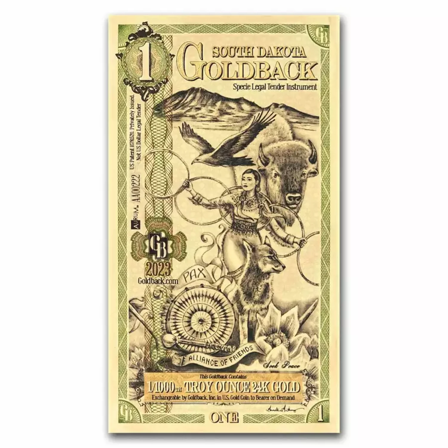 One South Dakota Goldback – Pax (Peace)