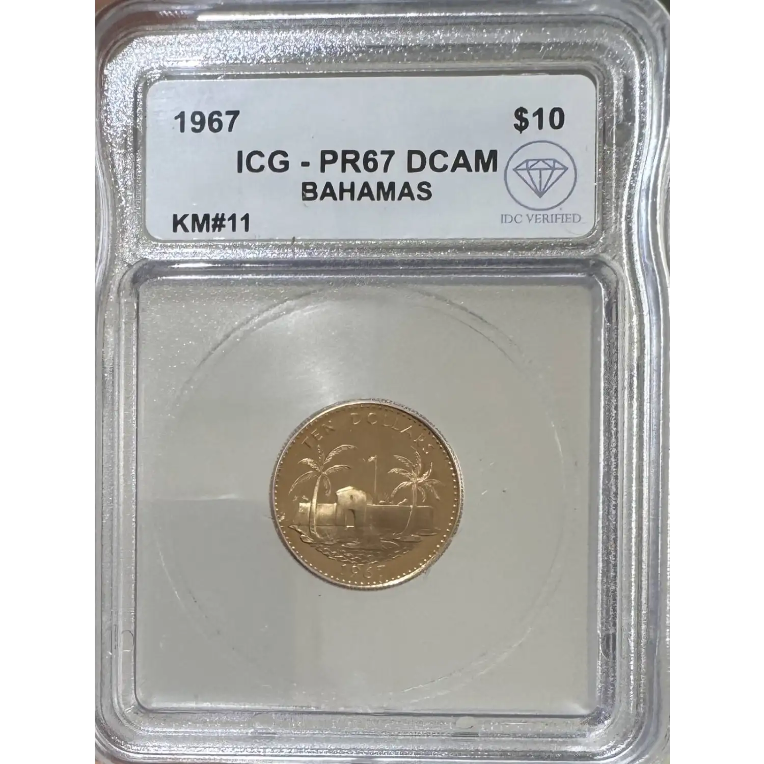 1967 BAHAMAS Gold 10 DOLLARS ICG PR-67 DCAM IDC Verified KM#11