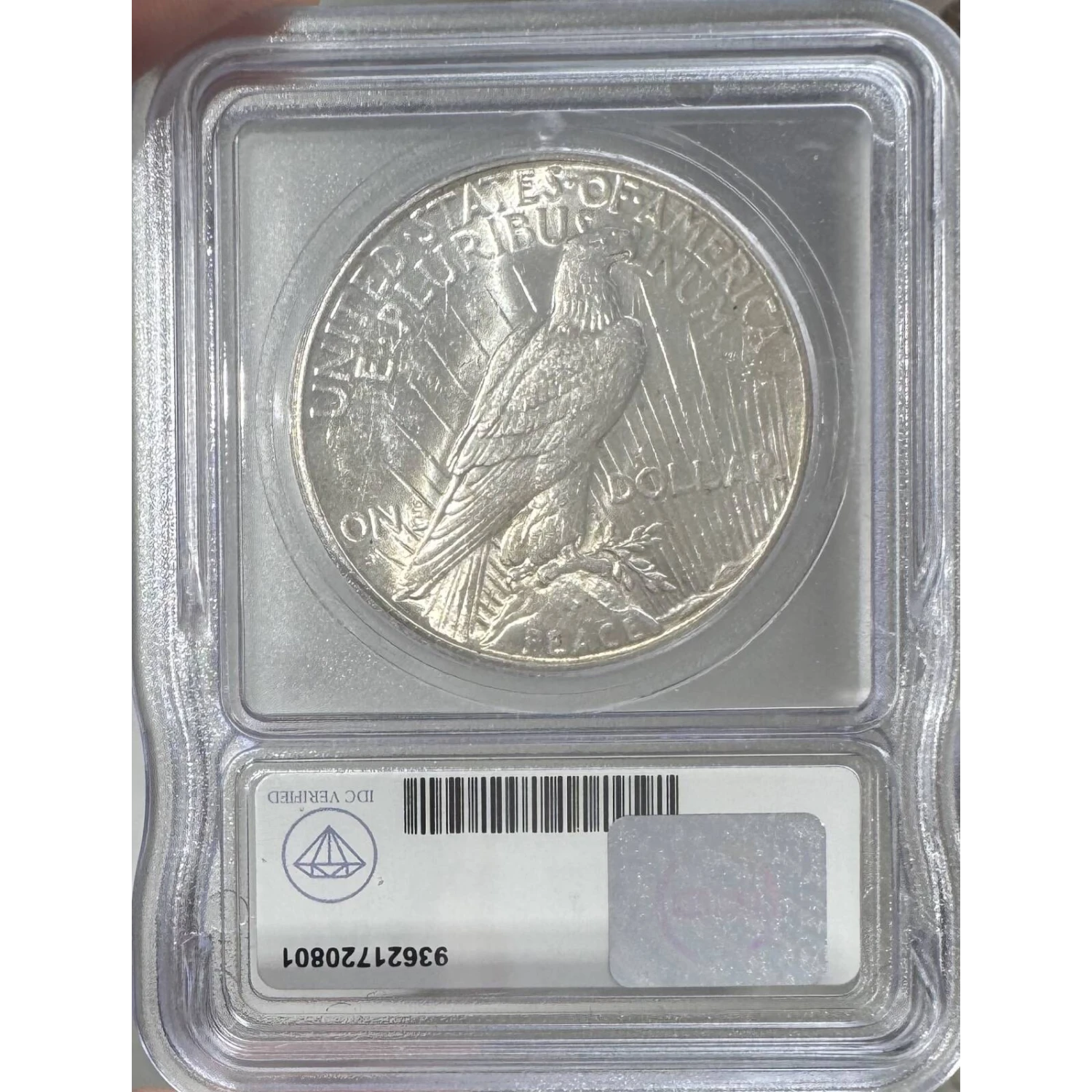Reverse: Perched eagle standing on a rock facing the right with UNITED STATES oF AMERICA and E PLURIBUS UNUM at the top periphery. The denomination of ONE DOLLAR left and right of the eagle's tail and the word PEACE at the bottom. Mintmark, if any, appears below the word ONE on the left side.
