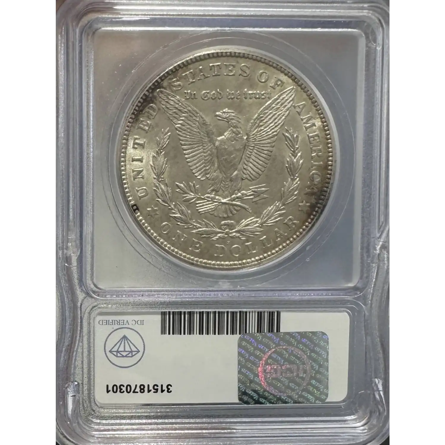 Reverse: The heraldic eagle is centered holding a bunch of arrows and branch surrounded by and olive leaves. The words UNITED STATES OF AMERICA * ONE DOLLAR frame the periphery. Mint mark, if any, appears above the letters DO of DOLLAR.