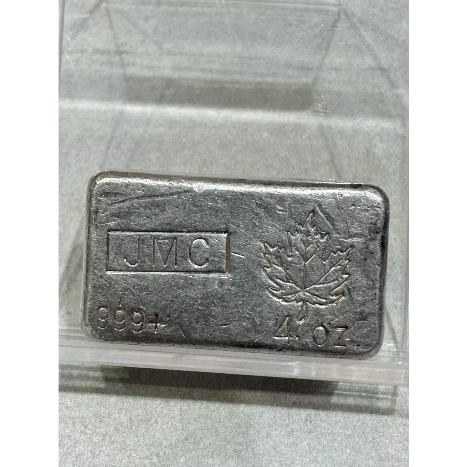 This JMC, Johnson Matthey Canada 4oz. bar is a part of a series that also includes the 3, 5, 7, and 10 oz bars. All are stamped JMC along with the Canadian maple leaf. Very cool collectible bars!