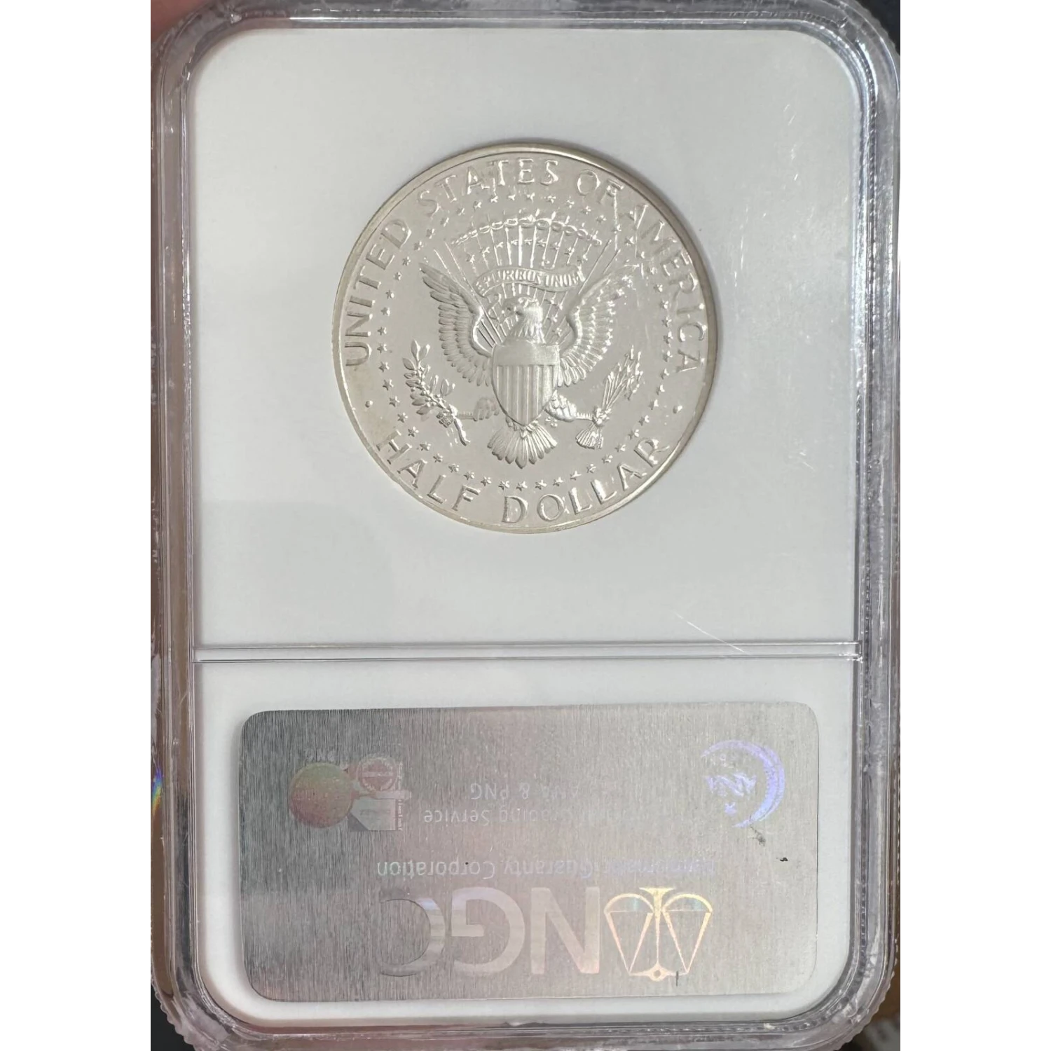 Reverse: The heraldic eagle holding arrows and branch of olive leaves with a full circle of stars around it. UNITED STATES OF AMERICA * HALF DOLLAR surround the periphery.