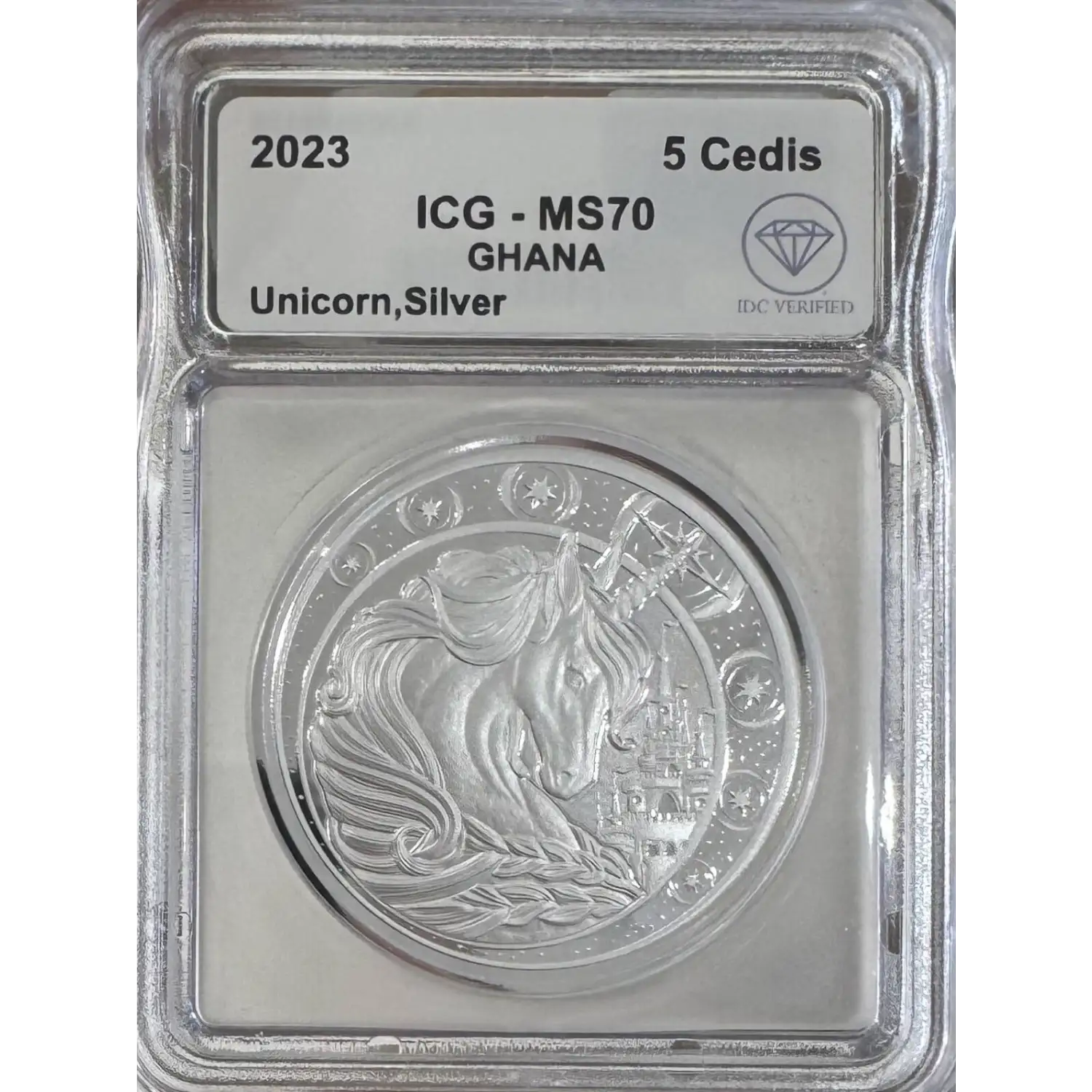 | Name | 2023 Ghana Silver Unicorn ICG MS70 IDC Verified |