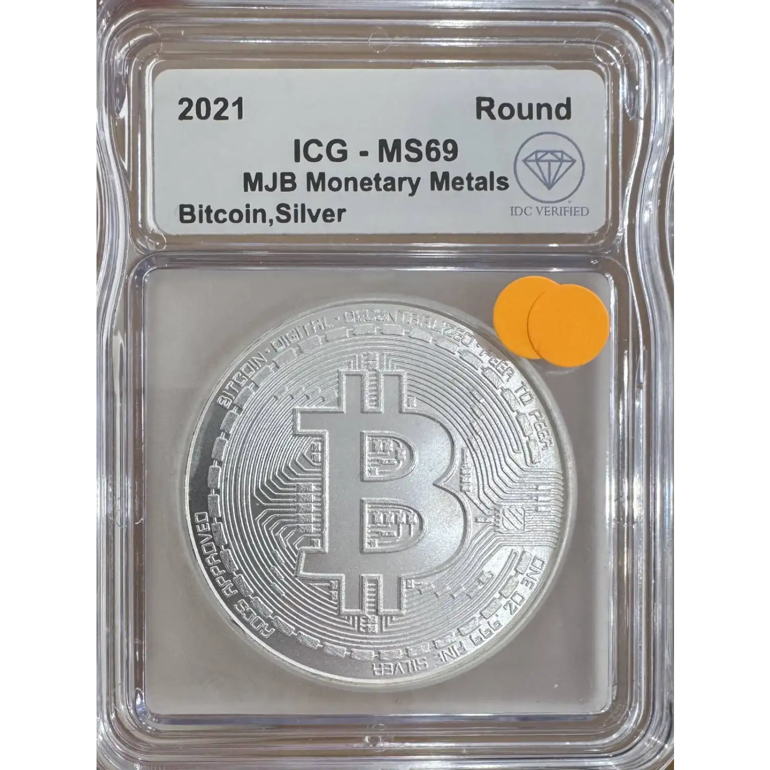 | Name | 2021 MJB Monetary Metals Bitcoin Silver Round ICG MS69 IDC Verified |