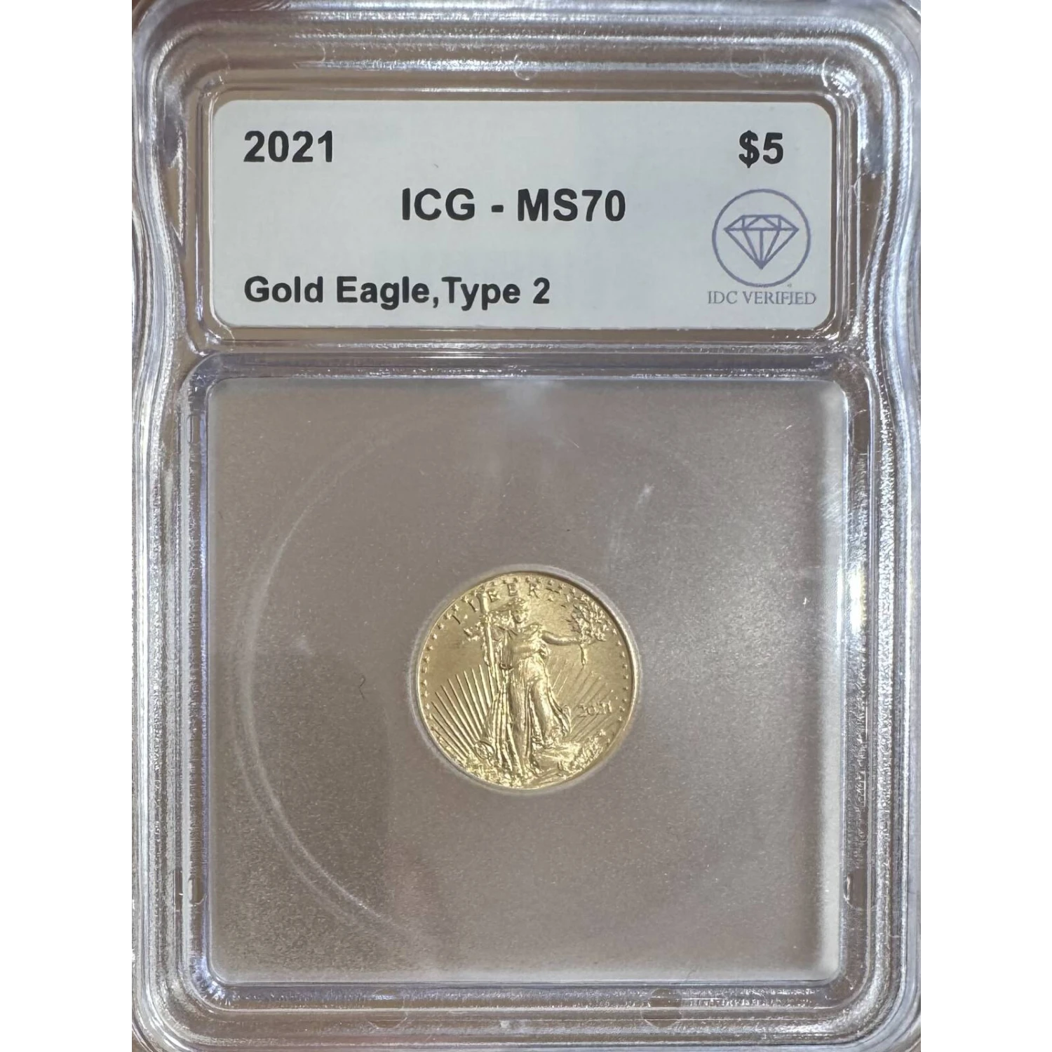 The 2021 5 Dollars is part of a series of Gold Eagle coins struck from 1986-Present. The specific variety is Gold Eagle. Struck in Philadelphia and designated as a Business (MS) strike, this coin is made of 91.67% gold; 3% silver; 5.33% copper.