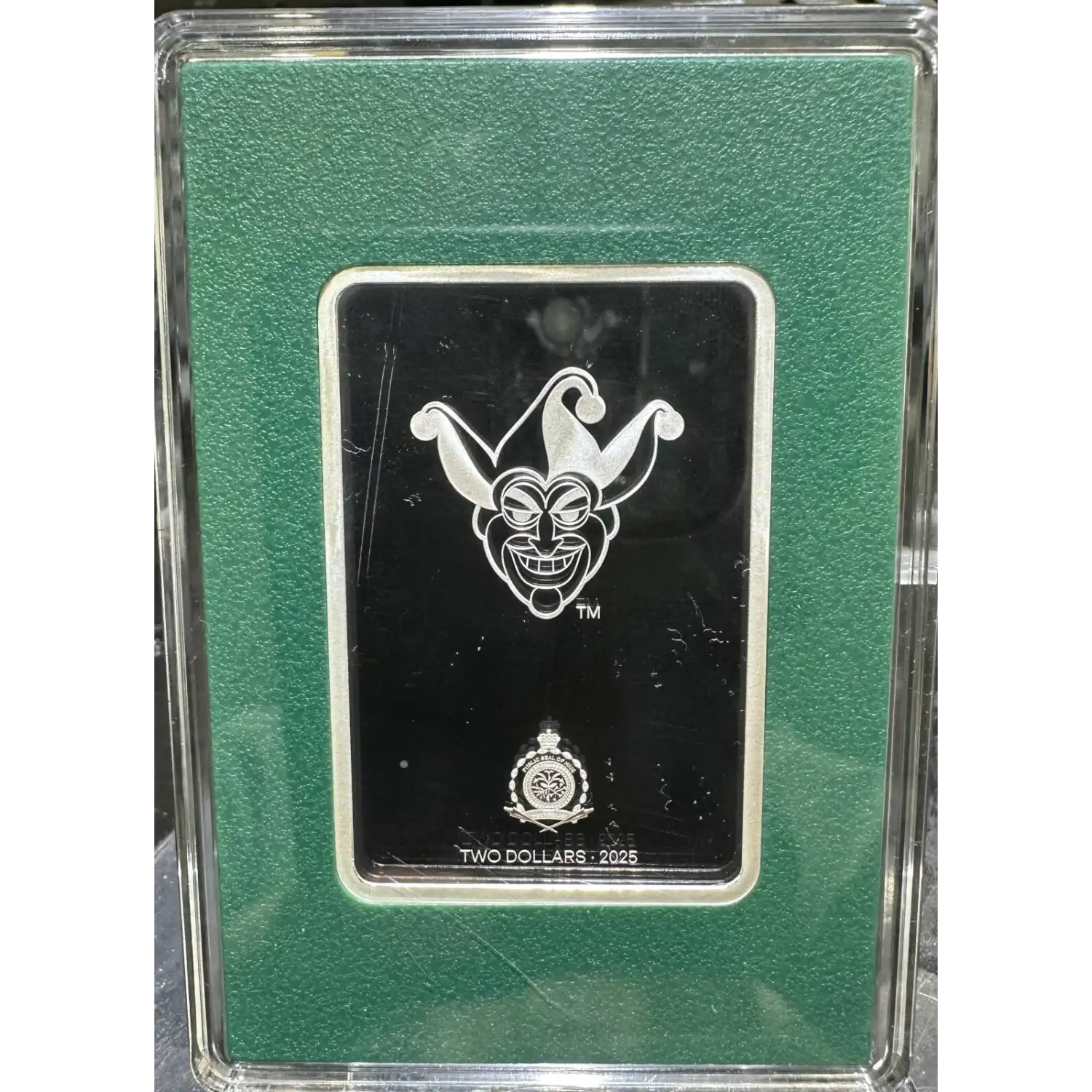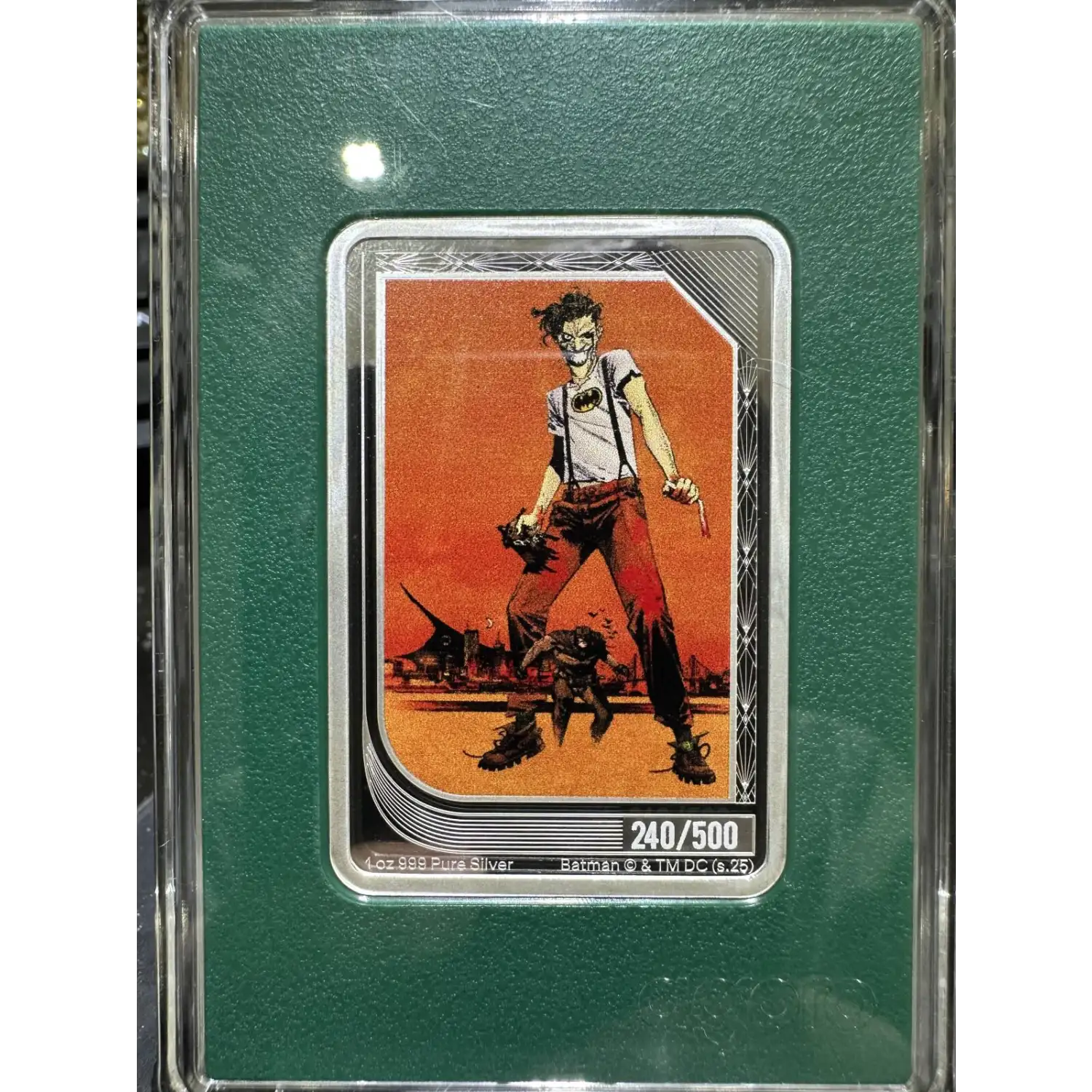 The 2025 Art of DC Comics Mint Trading Coin featuring The Joker is a limited edition silver coin from Niue, certified by the mint with a serial number of 240/500. This coin has a fineness of 0.999 and contains 1 oz of precious metal content. Produced by the New Zealand Mint and distributed by Sterling Silver Surfers LLC, this rare coin is a unique addition to any collector's inventory, boasting special features that make it #240 of only 500 in existence.