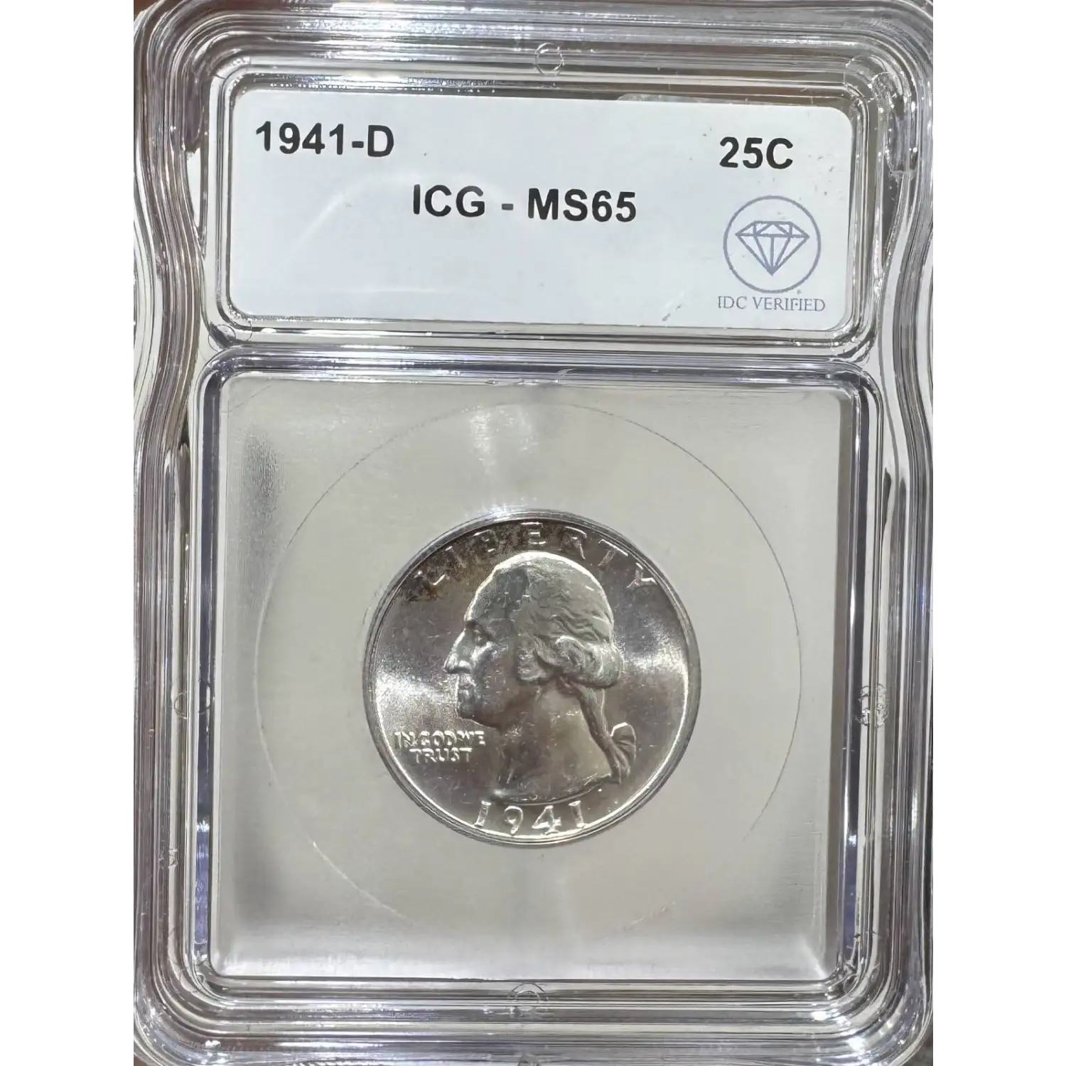 The 1941-D 25 Cents is part of a series of Washington quarter coins struck from 1932-1964. Struck in Denver and designated as a Business (MS) strike, this coin is made of 90% silver; 10% copper from a mintage of 16,714,800 struck.