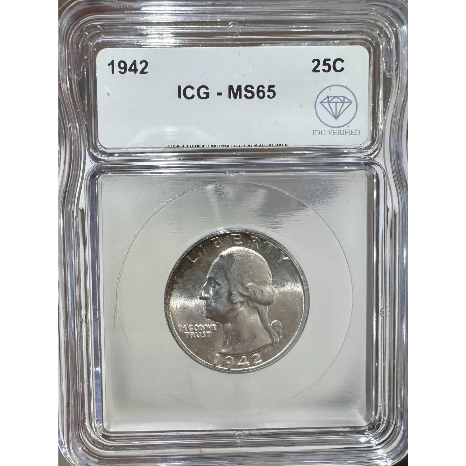 The 1942 25 Cents is part of a series of Washington quarter coins struck from 1932-1964. Struck in Philadelphia and designated as a Business (MS) strike, this coin is made of 90% silver; 10% copper from a mintage of 102,096,000 struck.