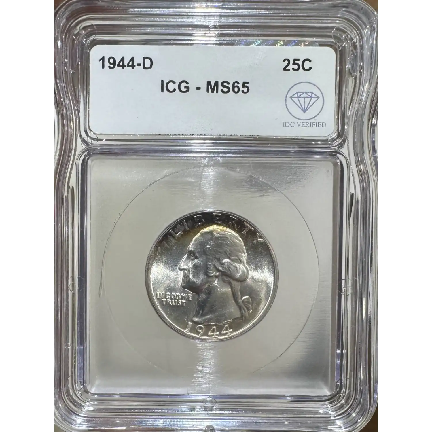 The 1944-D 25 Cents is part of a series of Washington quarter coins struck from 1932-1964. Struck in Denver and designated as a Business (MS) strike, this coin is made of 90% silver; 10% copper from a mintage of 14,600,800 struck.