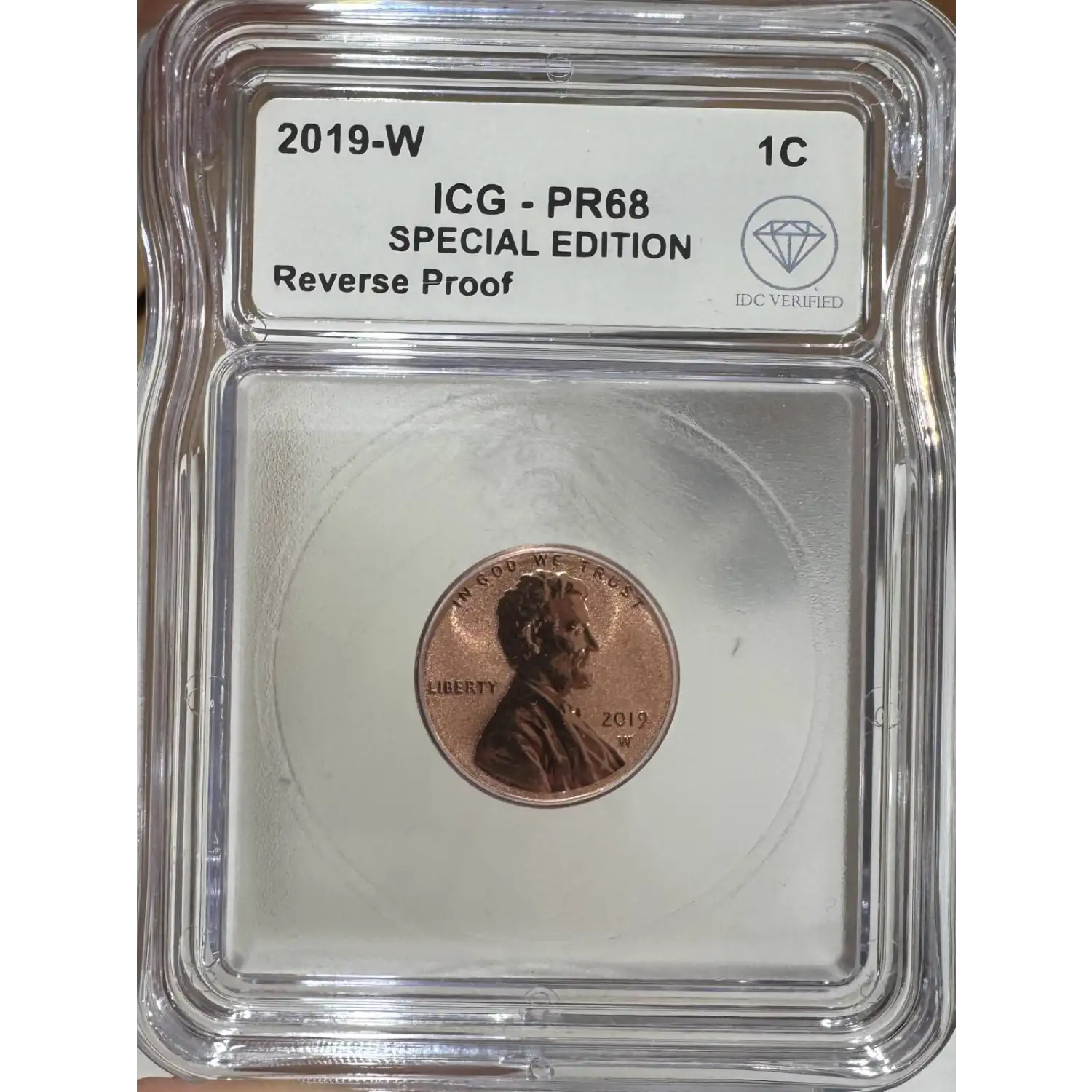 The 2019-W One Cent is part of a series of Lincoln Cent coins struck from 2010-2025. The specific variety is Shield. Struck in West Point and designated as a Proof (PR) strike, this coin is made of Copper-plated zinc from a mintage of 412,708 struck.