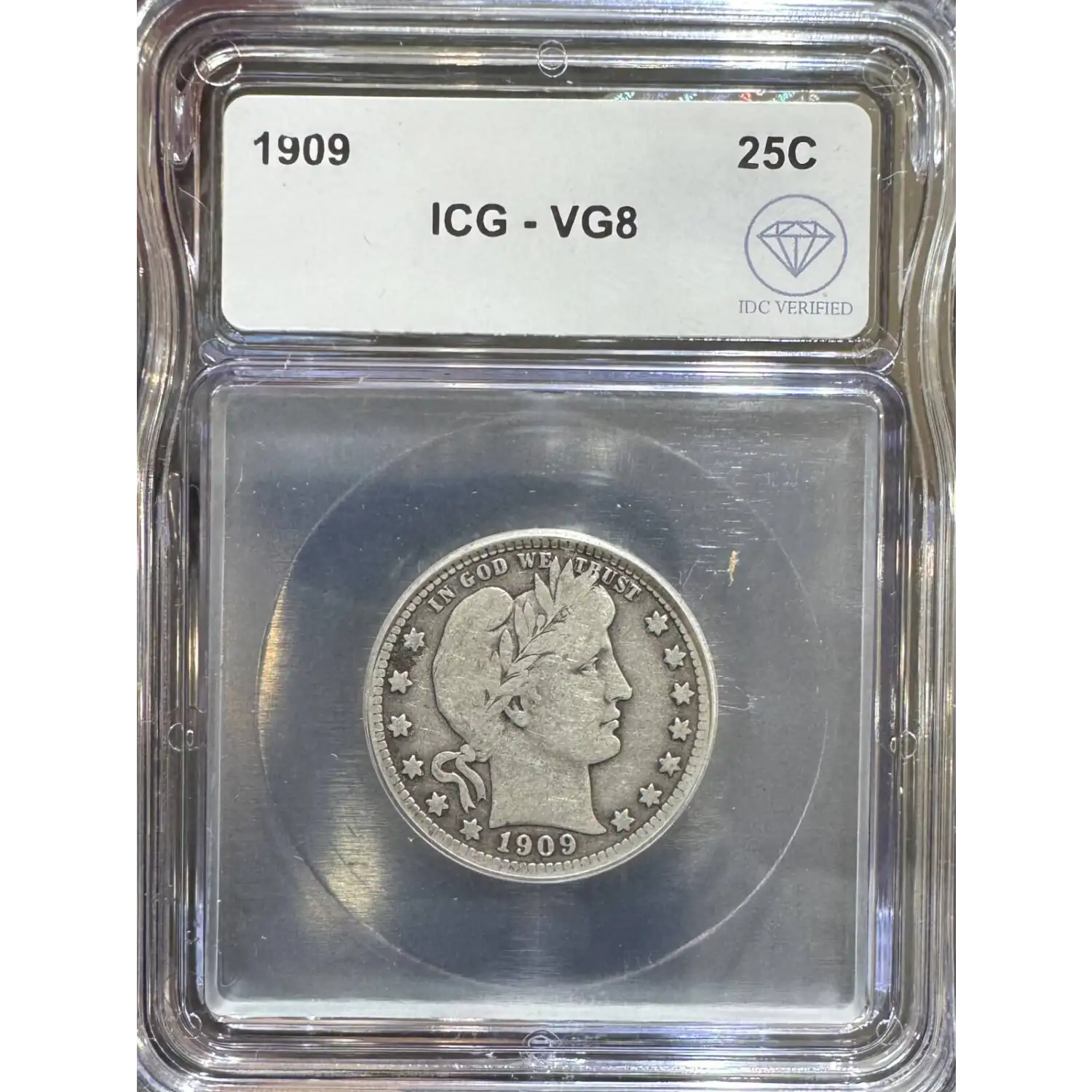 The 1909 25 Cents is part of a series of Liberty head (Barber) quarter coins struck from 1892-1916. Struck in Philadelphia and designated as a Business (MS) strike, this coin is made of 90% silver; 10% copper from a mintage of 9,268,000 struck.