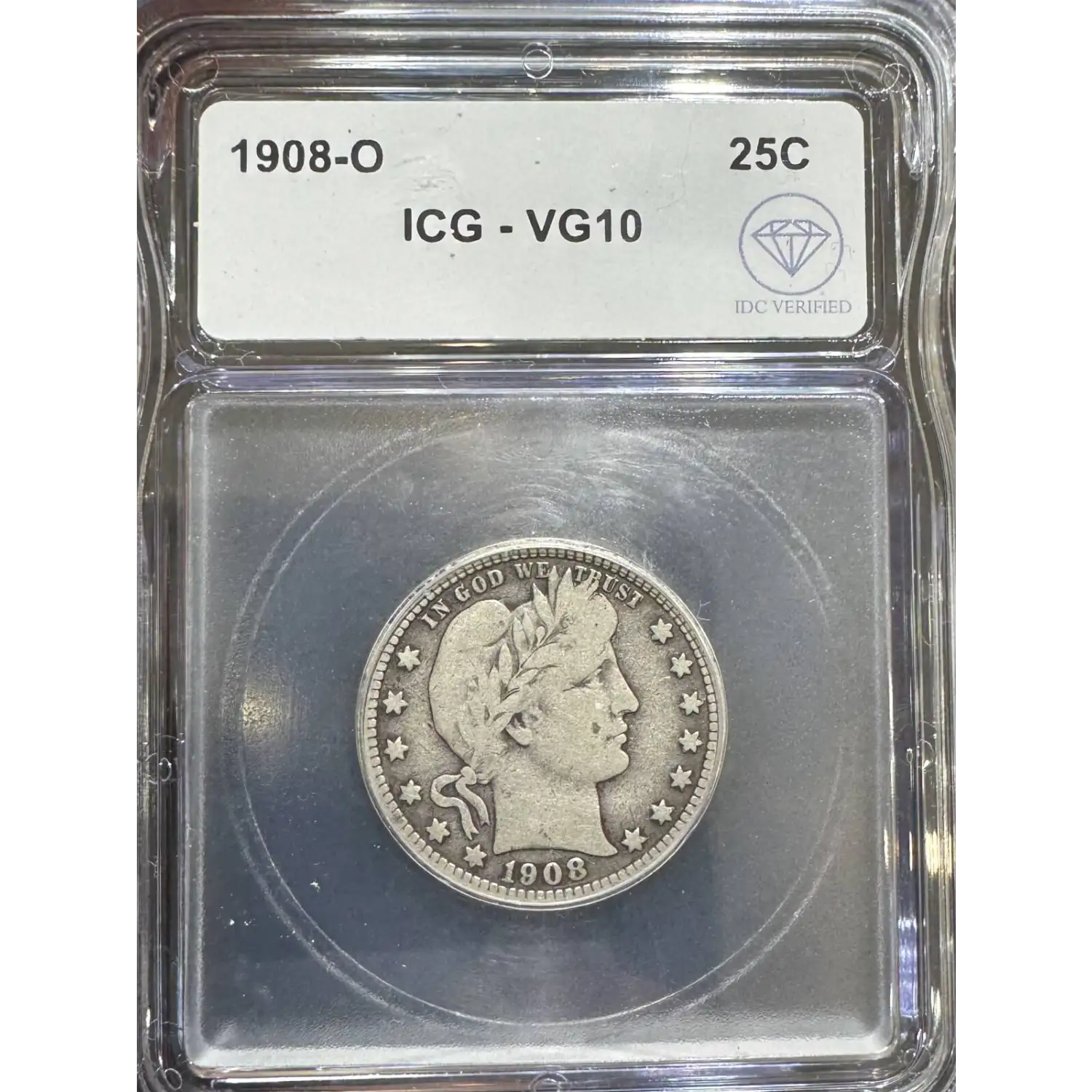 The 1908-O 25 Cents is part of a series of Liberty head (Barber) quarter coins struck from 1892-1916. Struck in New Orleans and designated as a Business (MS) strike, this coin is made of 90% silver; 10% copper from a mintage of 6,244,000 struck.