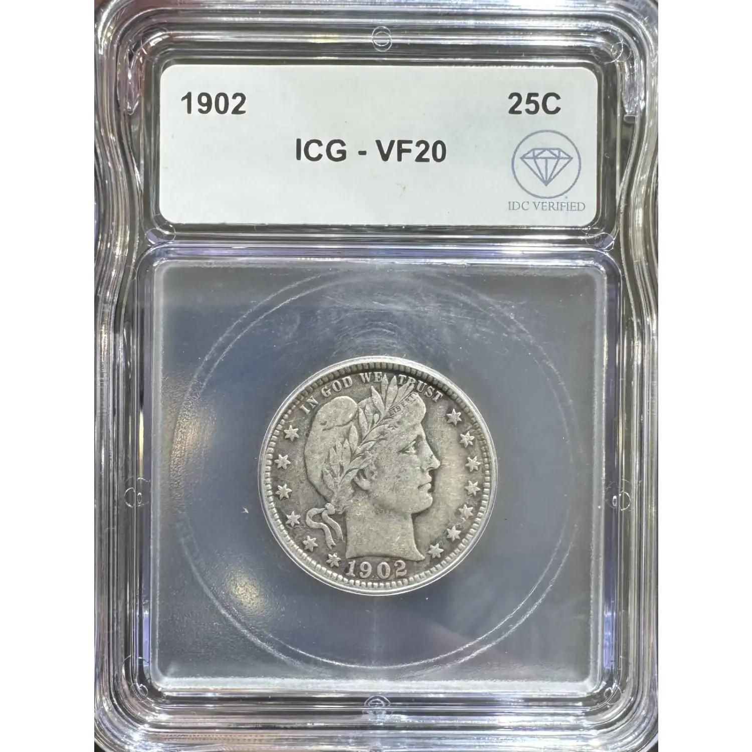 The 1902 25 Cents is part of a series of Liberty head (Barber) quarter coins struck from 1892-1916. Struck in Philadelphia and designated as a Business (MS) strike, this coin is made of 90% silver; 10% copper from a mintage of 12,196,967 struck.