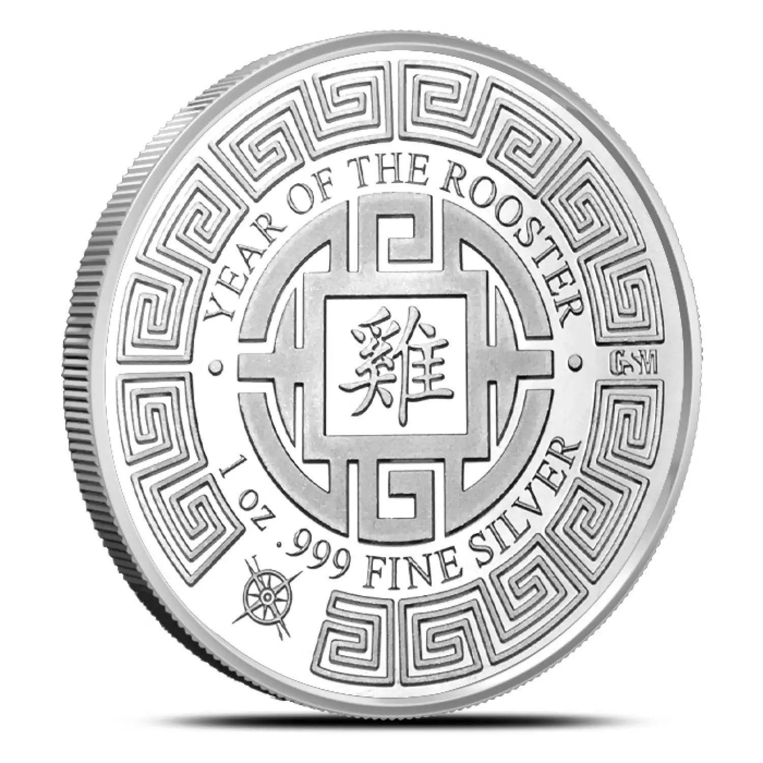 Reverse features include complimentary artwork to that of the obverse. Centered on the reverse is the Chinese symbol for rooster, with the inscription, “YEAR OF THE ROOSTER” above and “1 oz .999 FINE SILVER” below.