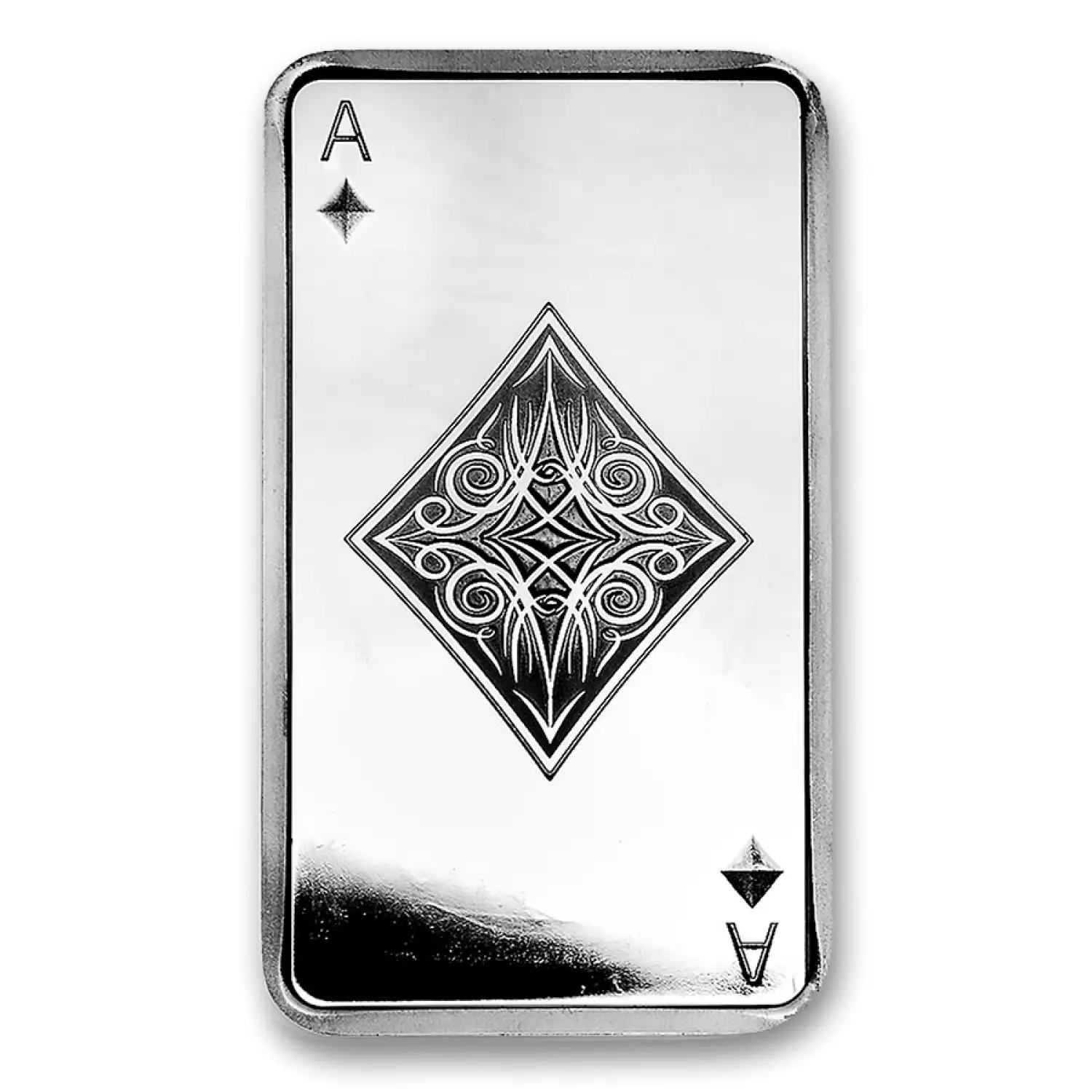 The Ace series brings an attractive design to a popular size. Offered in all four suits, the bars contain .999 Silver at a great price point!