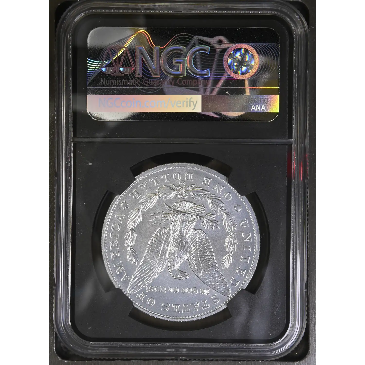 Reverse: The reverse depicts an eagle with outstretched wings clasping arrows and an olive branch, accompanied by a wreath. Reverse inscriptions are "UNITED STATES OF AMERICA," "IN GOD WE TRUST," and "ONE DOLLAR."