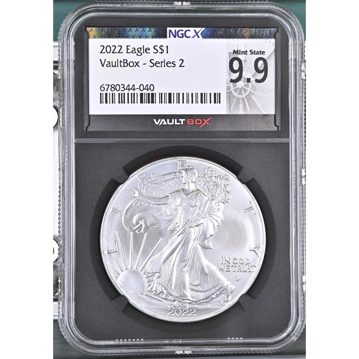 The 2022 One dollar is part of a series of Silver eagle coins struck from 1986-. The specific variety is Silver Eagle. Struck in Philadelphia and designated as a Business (MS) strike, this coin is made of 99.99% silver, 0.01% copper from a mintage of 16,000,000 struck.