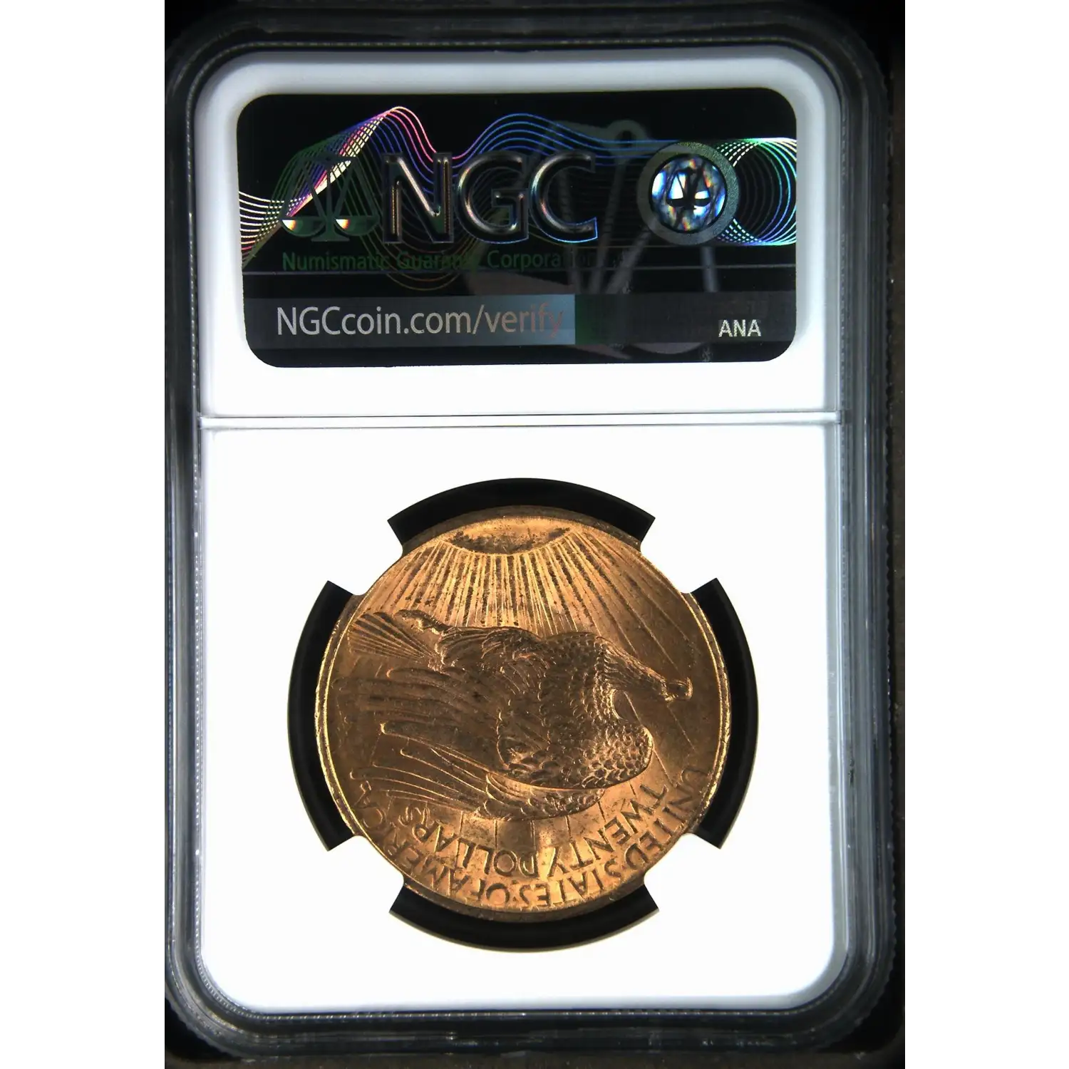 The 1908 No Motto is the last of the No motto Saint-Gaudens $20 which were retrofitted with the motto IN GOD WE TRUST later in 1908. The 1908 No Motto $20s are very common, certainly more so than even the 1907 No motto saints which are widely available. The 1908 No Motto double eagle is one of the most common of the entire series and thus are often sought by collectors who are building gold type collections. This piece is easily obtainable through the Gem Uncirculated grade range, with a handful known even in MS69.