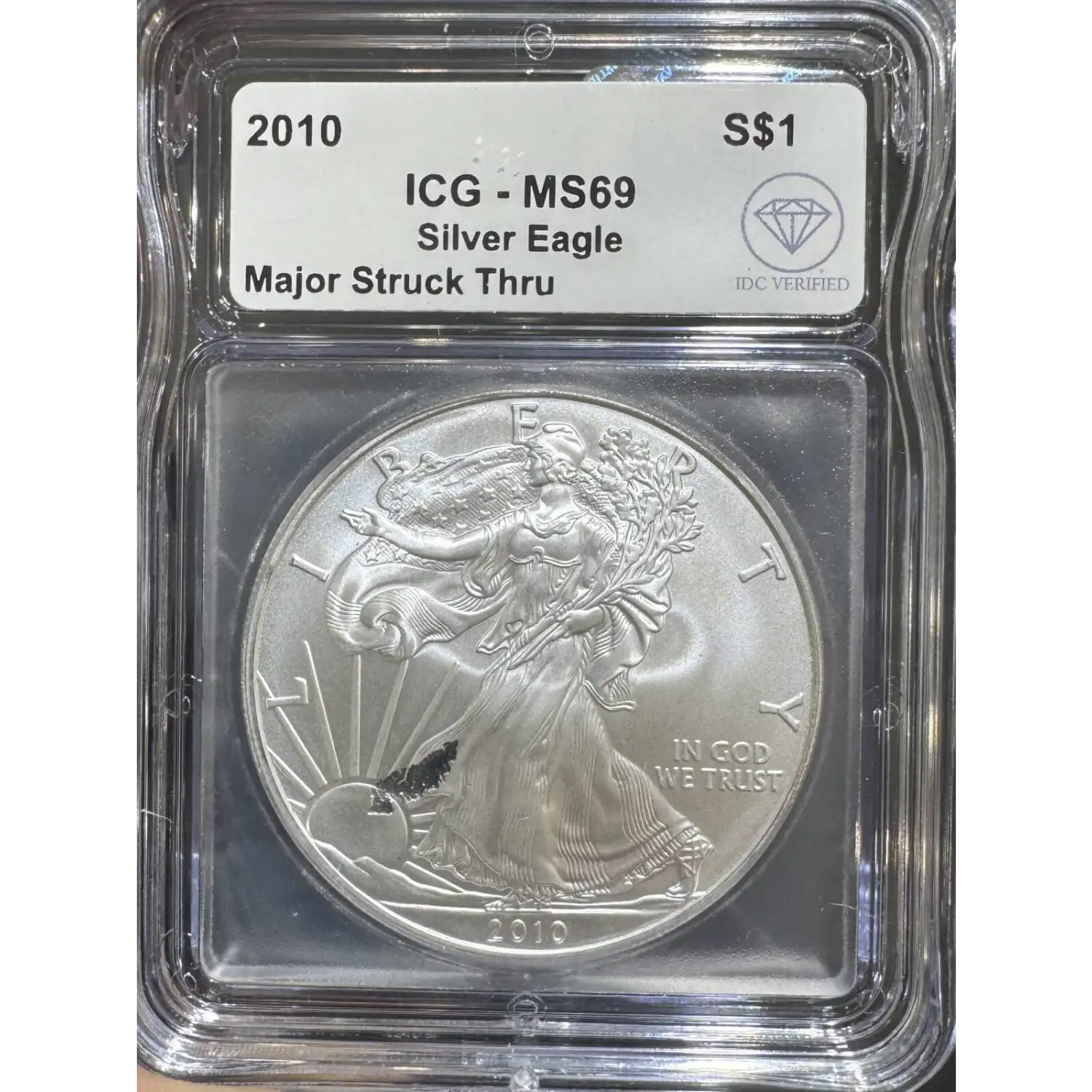 The 2010 One dollar is part of a series of Silver eagle coins struck from 1986-. The specific variety is Silver Eagle. Struck in Philadelphia and designated as a Business (MS) strike, this coin is made of 99.93% silver, 0.007% copper from a mintage of 34,764,500 struck.
