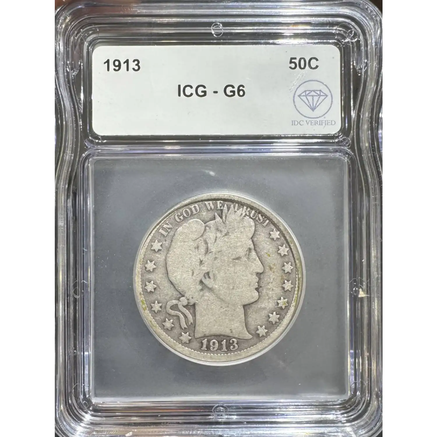 | Name | 1913 Barber Half Dollar ICG G-6 IDC Verified |