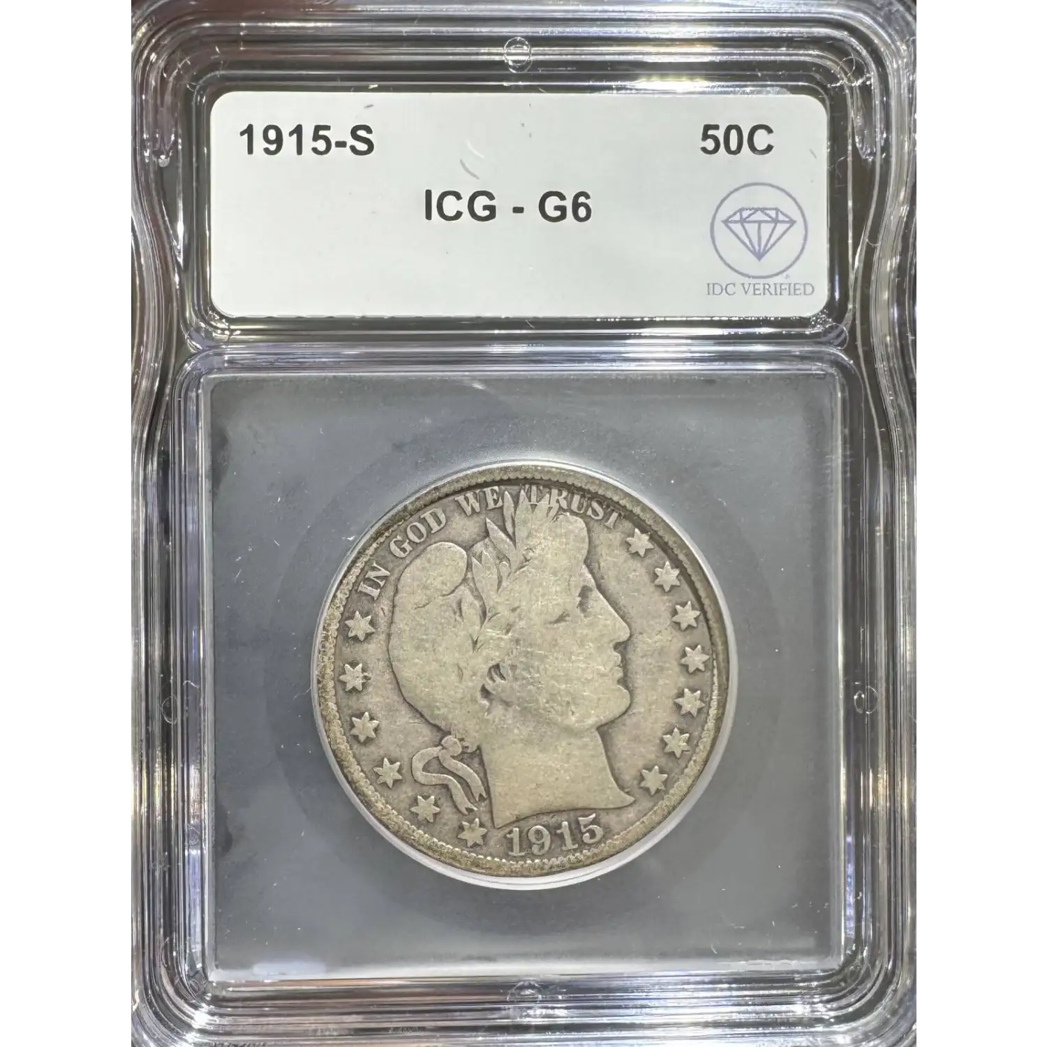 | Name | 1915-S Barber Half Dollar ICG G-6 IDC Verified |