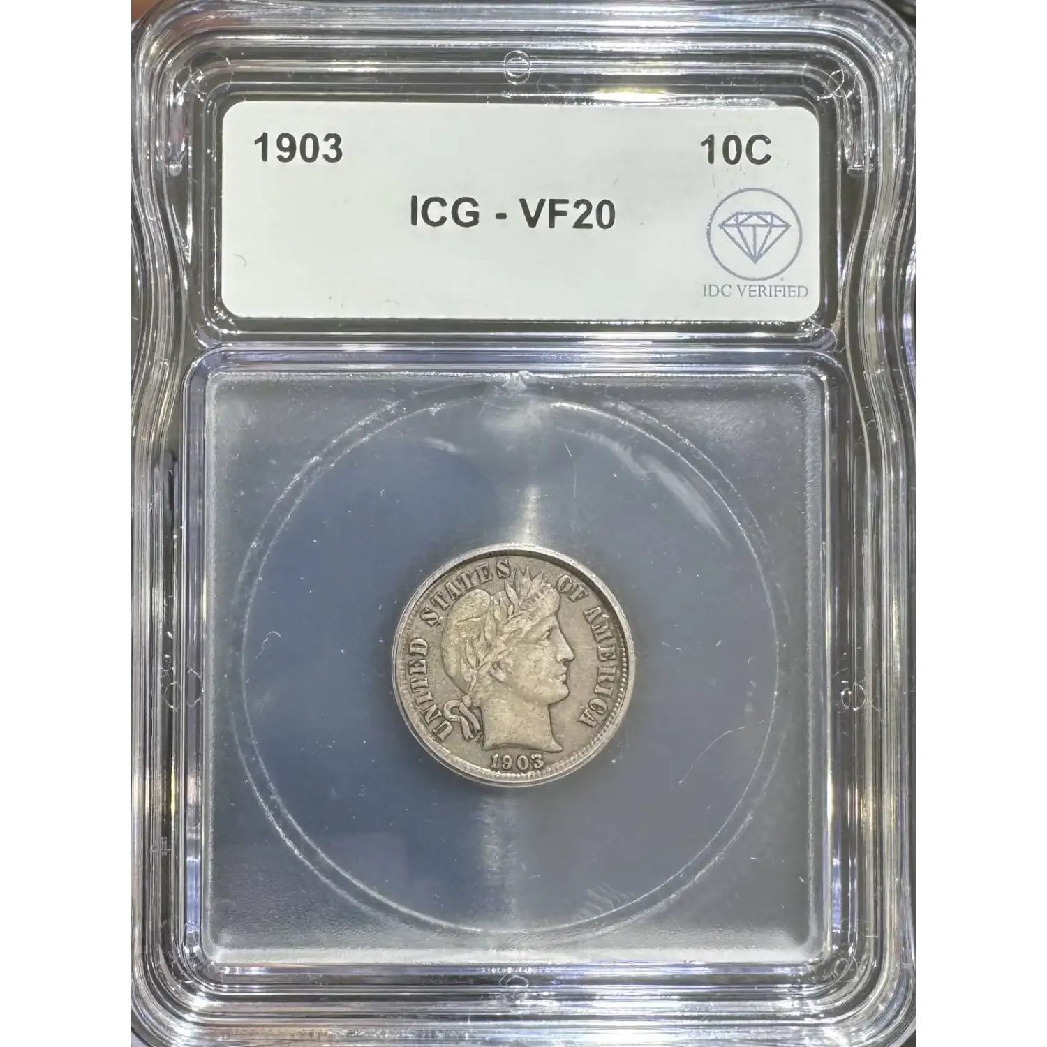 The 1903 10 Cents is part of a series of Liberty head (Barber) dime coins struck from 1892-1916. Struck in Philadelphia and designated as a Business (MS) strike, this coin is made of 90% silver; 10% copper from a mintage of 19,500,000 struck.