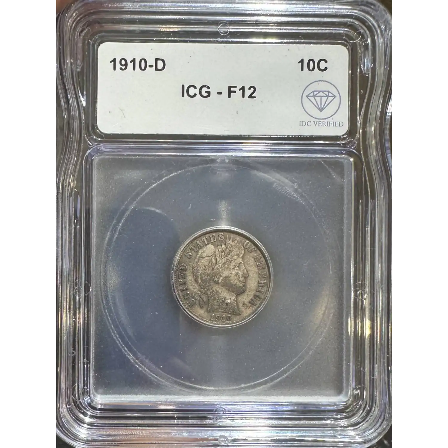 The 1910-D 10 Cents is part of a series of Liberty head (Barber) dime coins struck from 1892-1916. Struck in Denver and designated as a Business (MS) strike, this coin is made of 90% silver; 10% copper from a mintage of 3,490,000 struck.