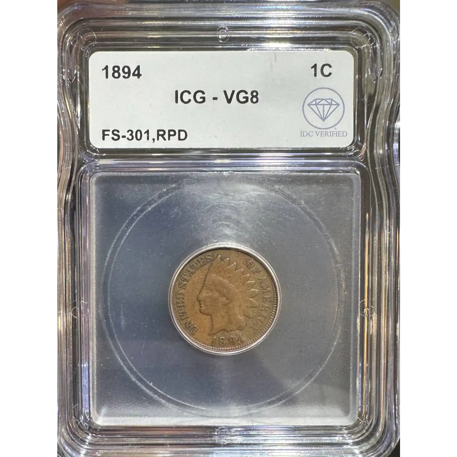 The 1894/1894 doubled date is a popular variety in the Indian Cent Series. Minor doubling is seen on the one with small spots east of the eight; but, the most obvious component of this variety appears on the nine (clear second nine at the top right of the nine) and four (clearly struck second point above the four). Tough to locate in all grades with Mint State pieces being scarce and gems being extremely rare. The value increases at a very gradual pace as the color designation goes from brown to red.