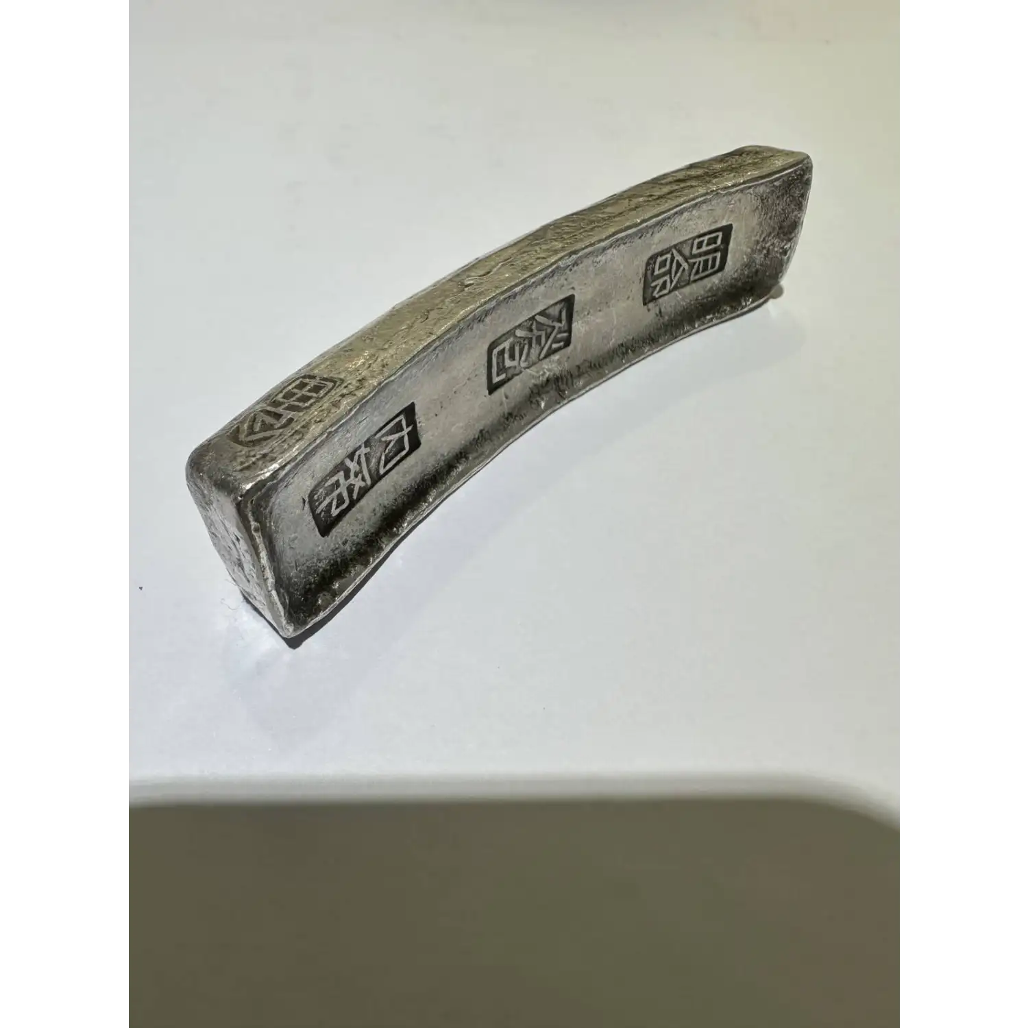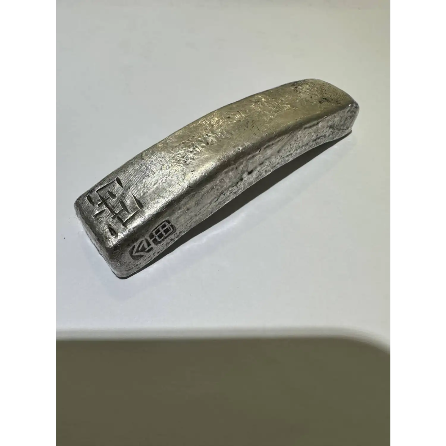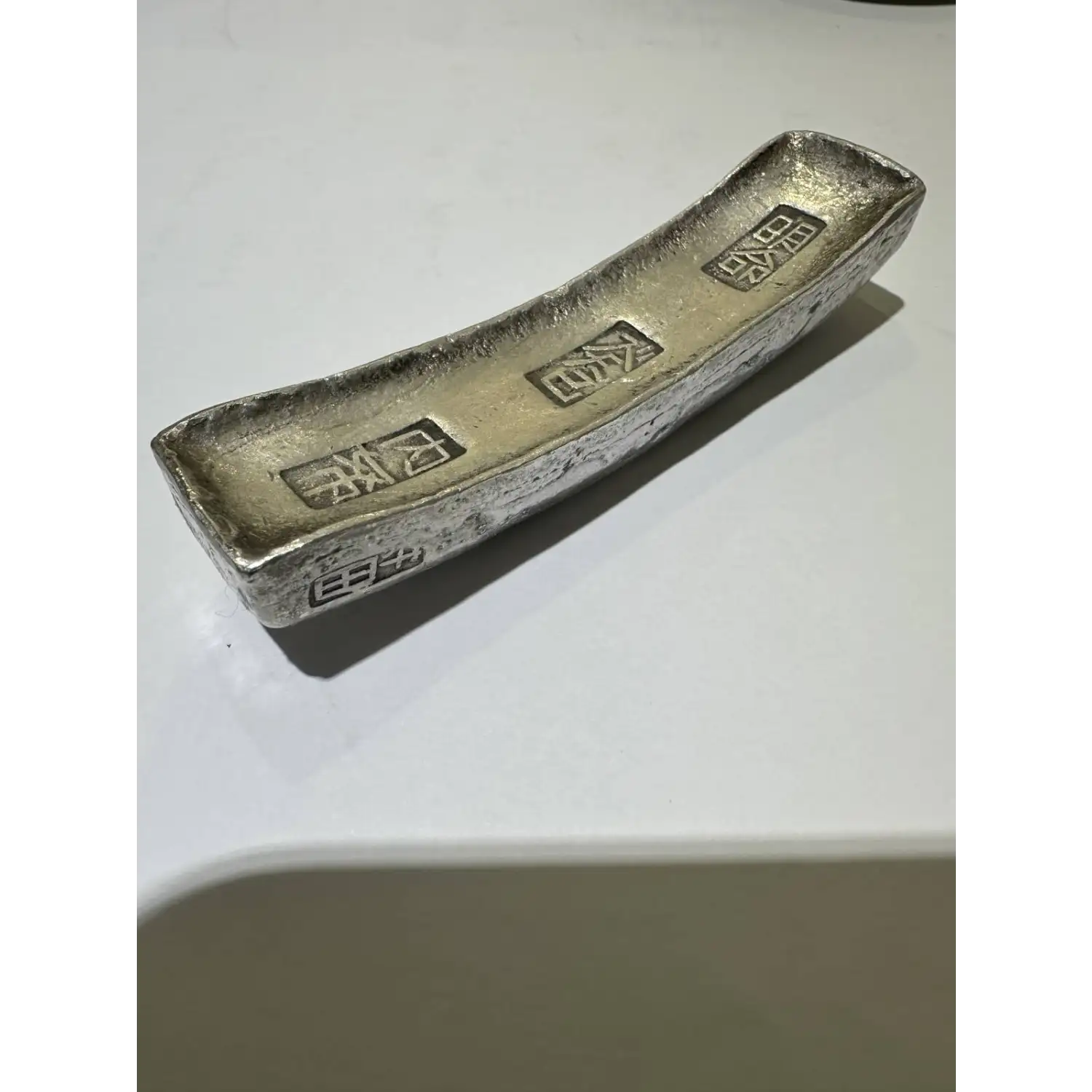 Cast mainly from melted Spanish-American 8 Reales, Indian Rupees, and French Indochina Piastres, they assay consistently .991 fine. A typical weight is generally in the 350-380 grams range, with a likely standard of 380 gm. The size is typically 110mm x 31mm x 14mm, except the early class which is longer and thinner.