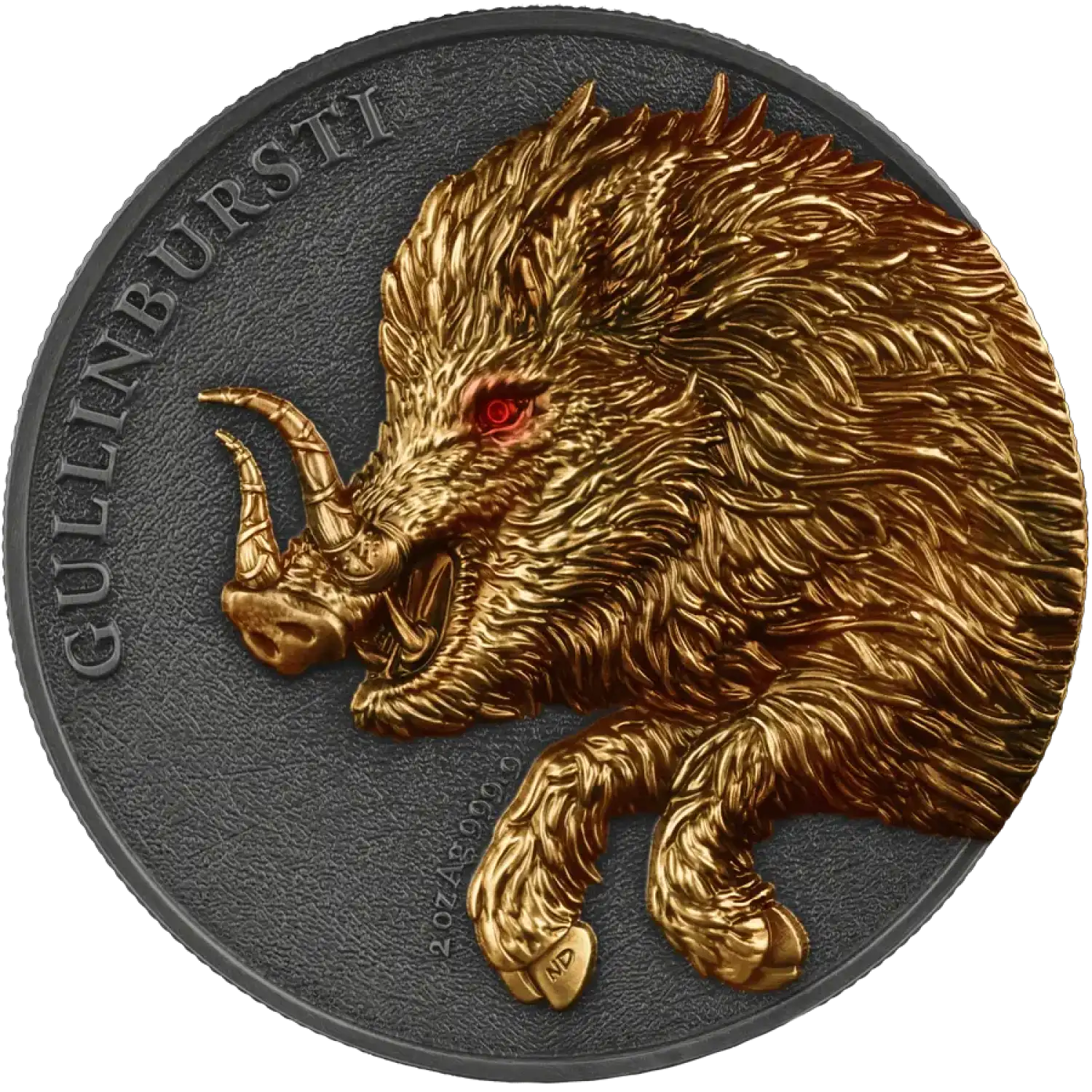Introducing the stunning 2025 2 oz Germania Beasts - Gullinbursti Ultra Double High Relief Silver Coin, an exquisite piece of art and craftsmanship that captures the essence of mythology and artistry. This extraordinary coin features the legendary character Gullinbursti, a boar from Norse mythology known for its incredible speed and strength. Minted in high relief, the Gullinbursti design adds depth and charisma, making this coin not just a means of investment but also a collectible treasure that adds value to any collection.