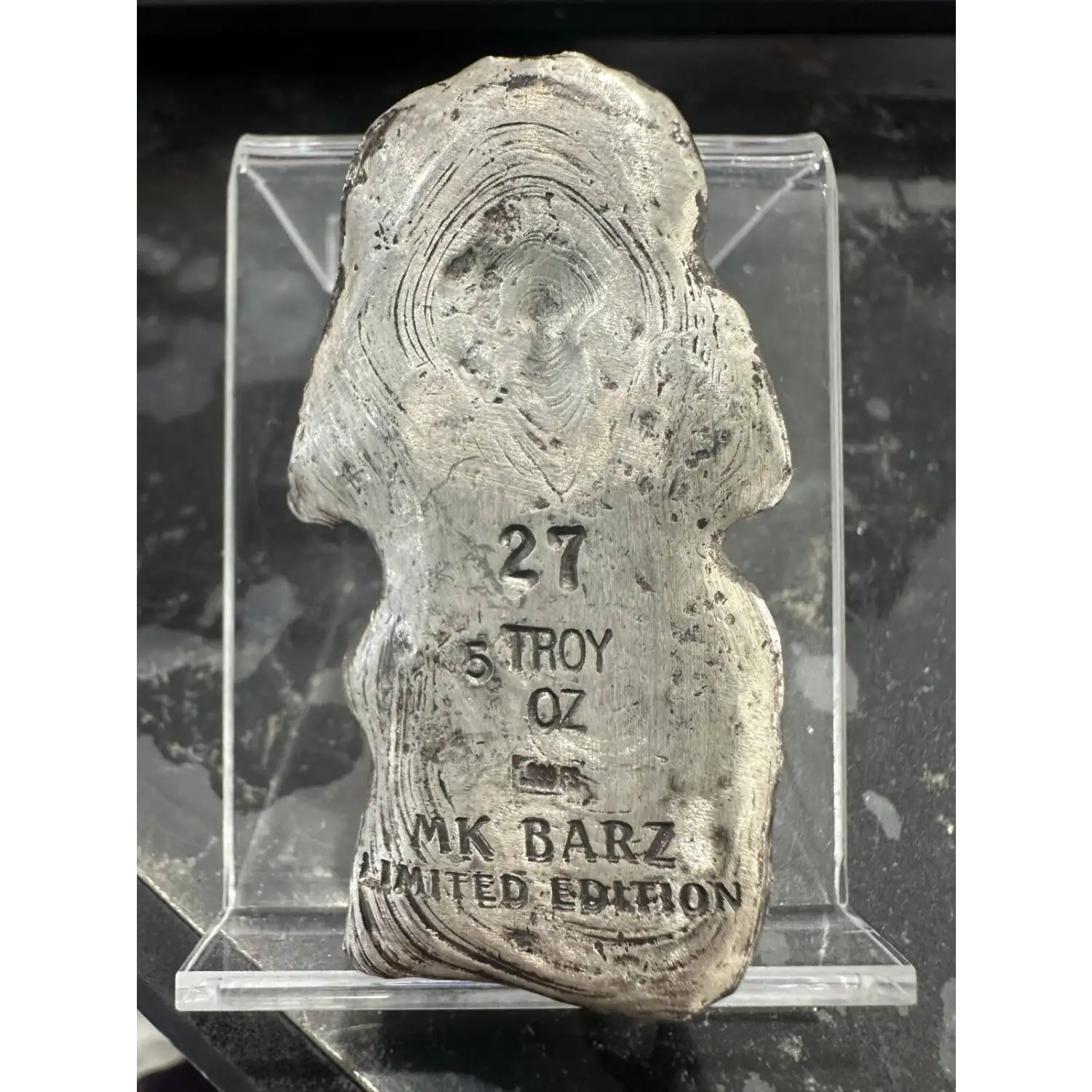 Item Pictured is the Item You Will Recieve. This is a custom poured bar made by MK BarZ it is a limited Edition of 500 pieces and includes COA # 27. This looks to be an earlier MK BarZ Pour.