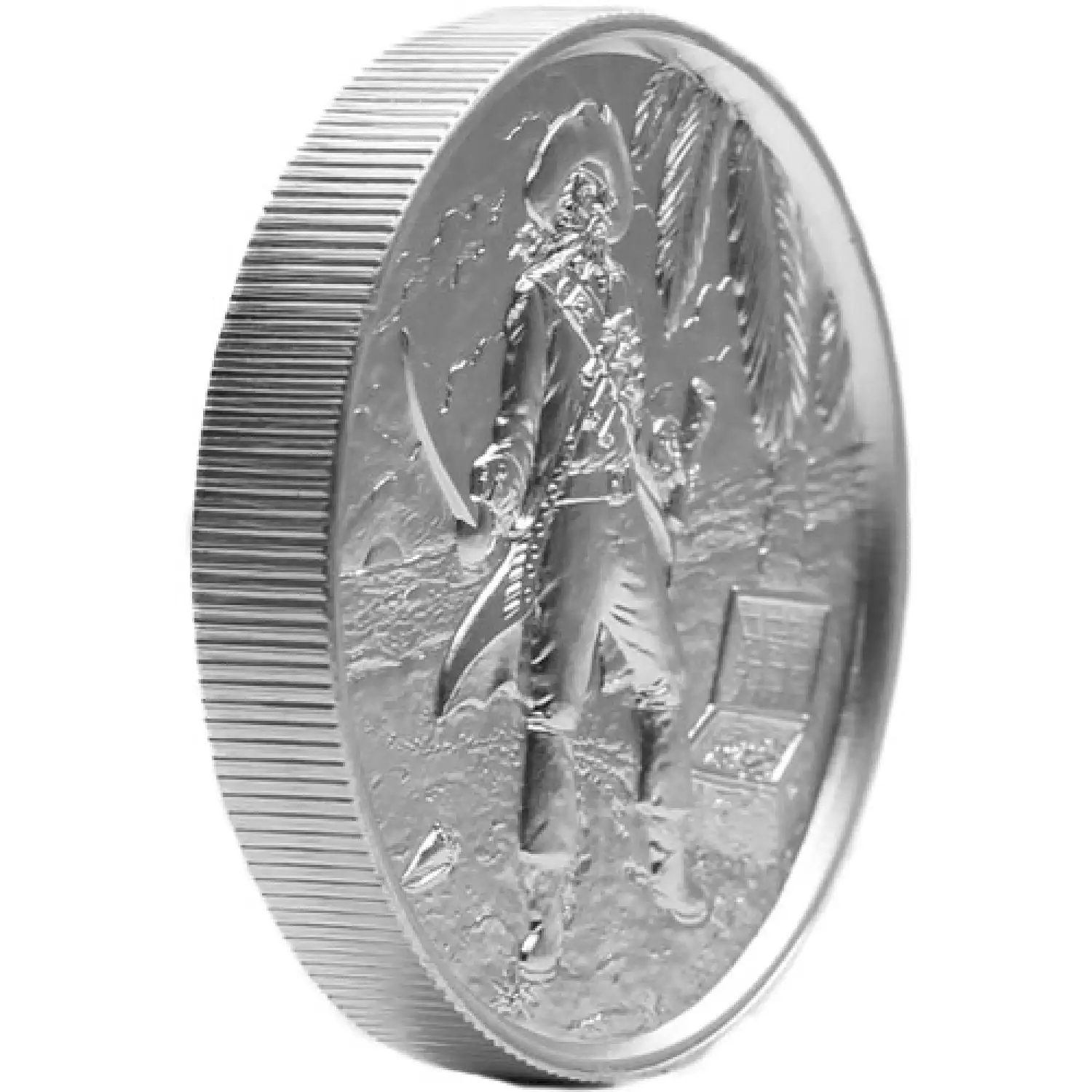 In this third release, the infamous The Captain has reached the perfect place to bury his treasure. These ultra-high-relief rounds are produced by striking silver blanks numerous times under immense pressure, giving the design fields a 3D look and feel.
