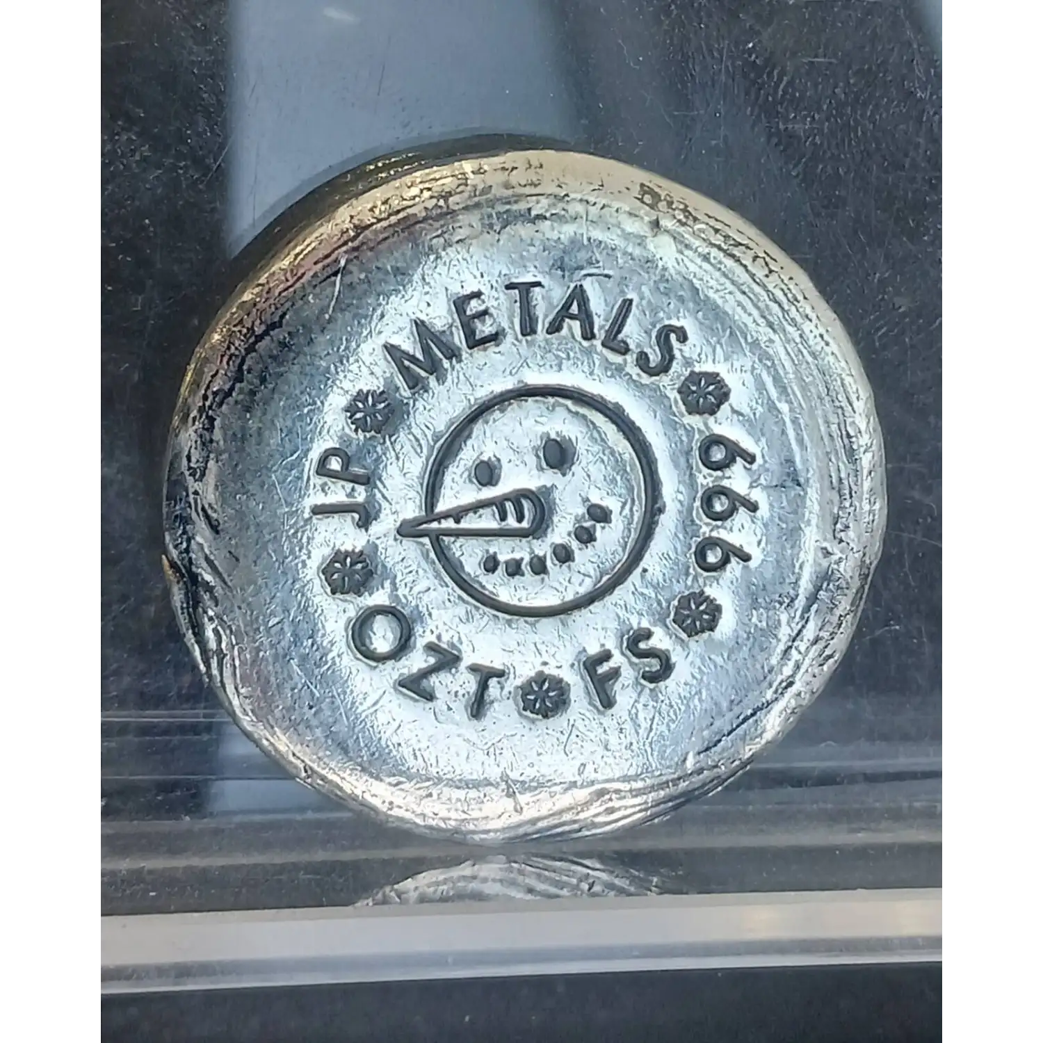 JP Metals "Frosty Button" 1oz Silver Round. The item has a certificate of Authenticity. Manufacturer by JP Metals.